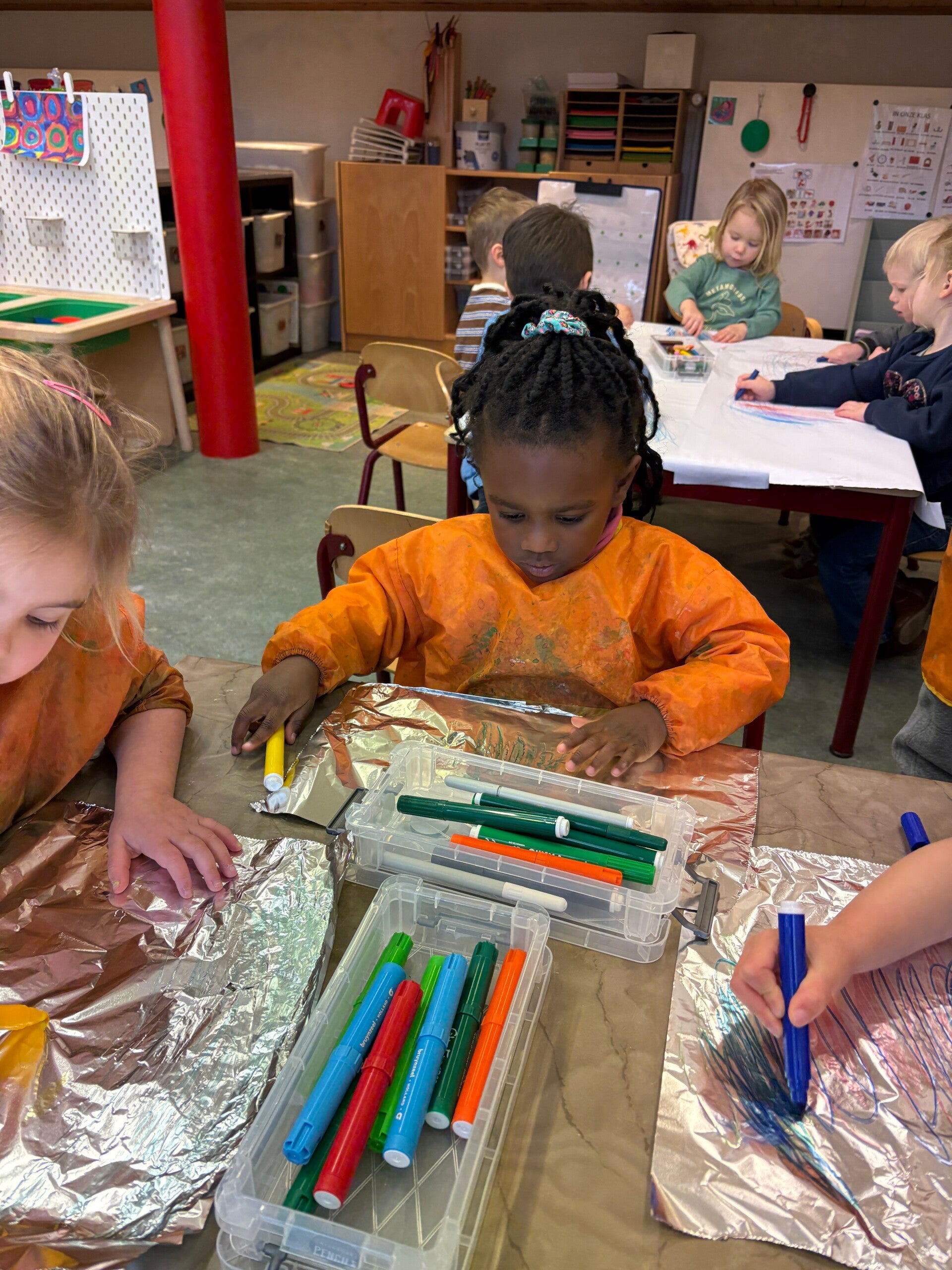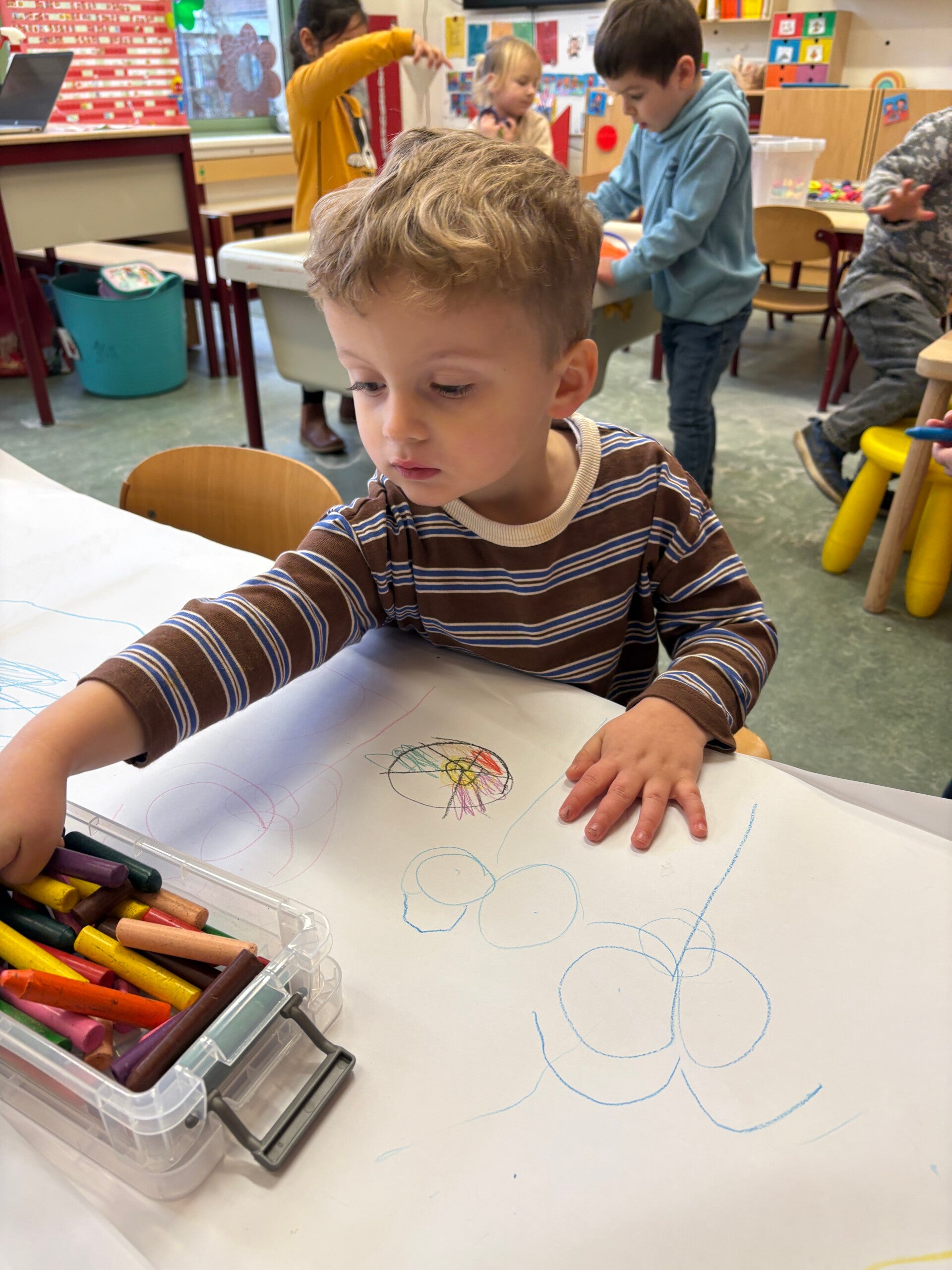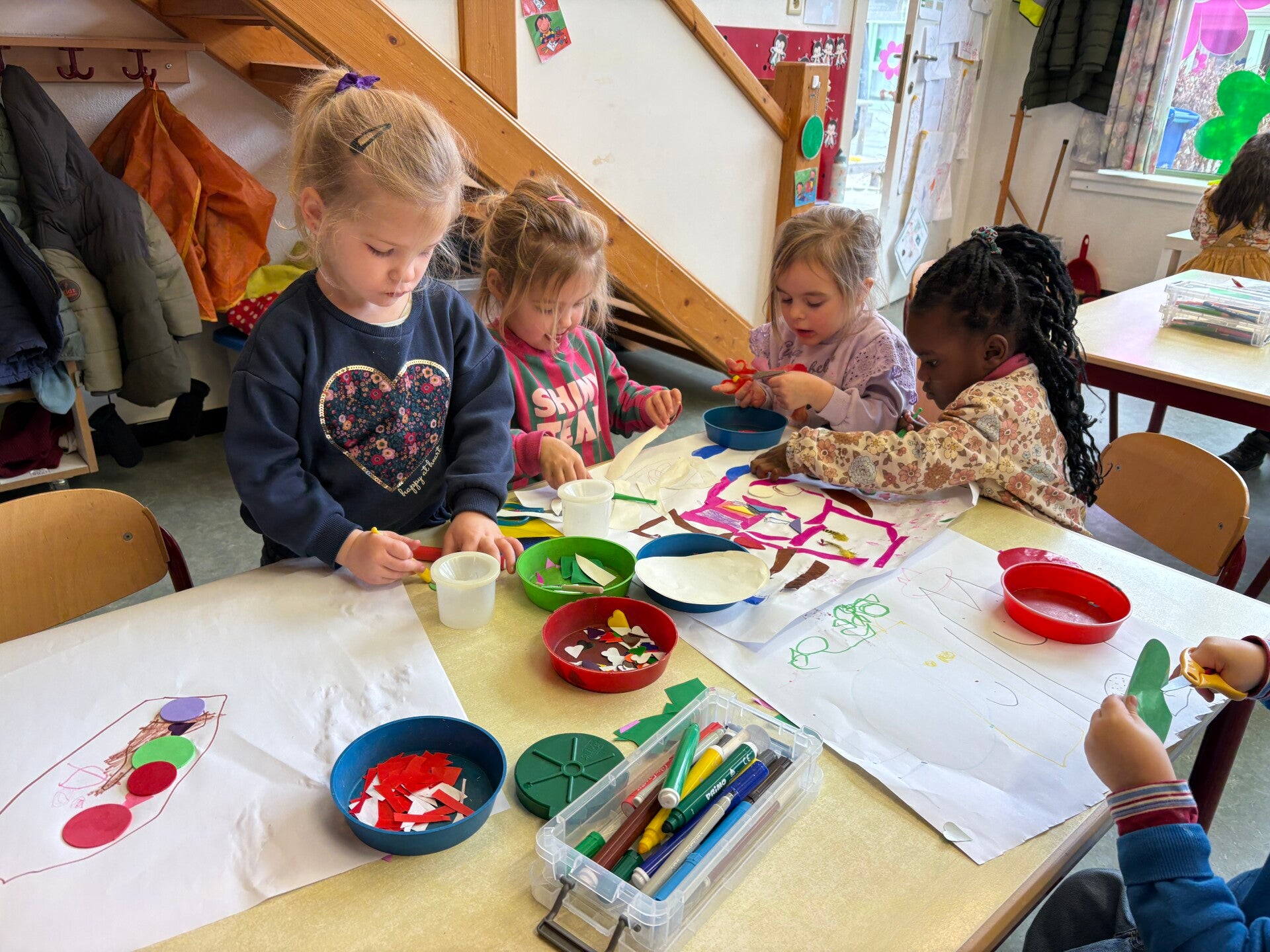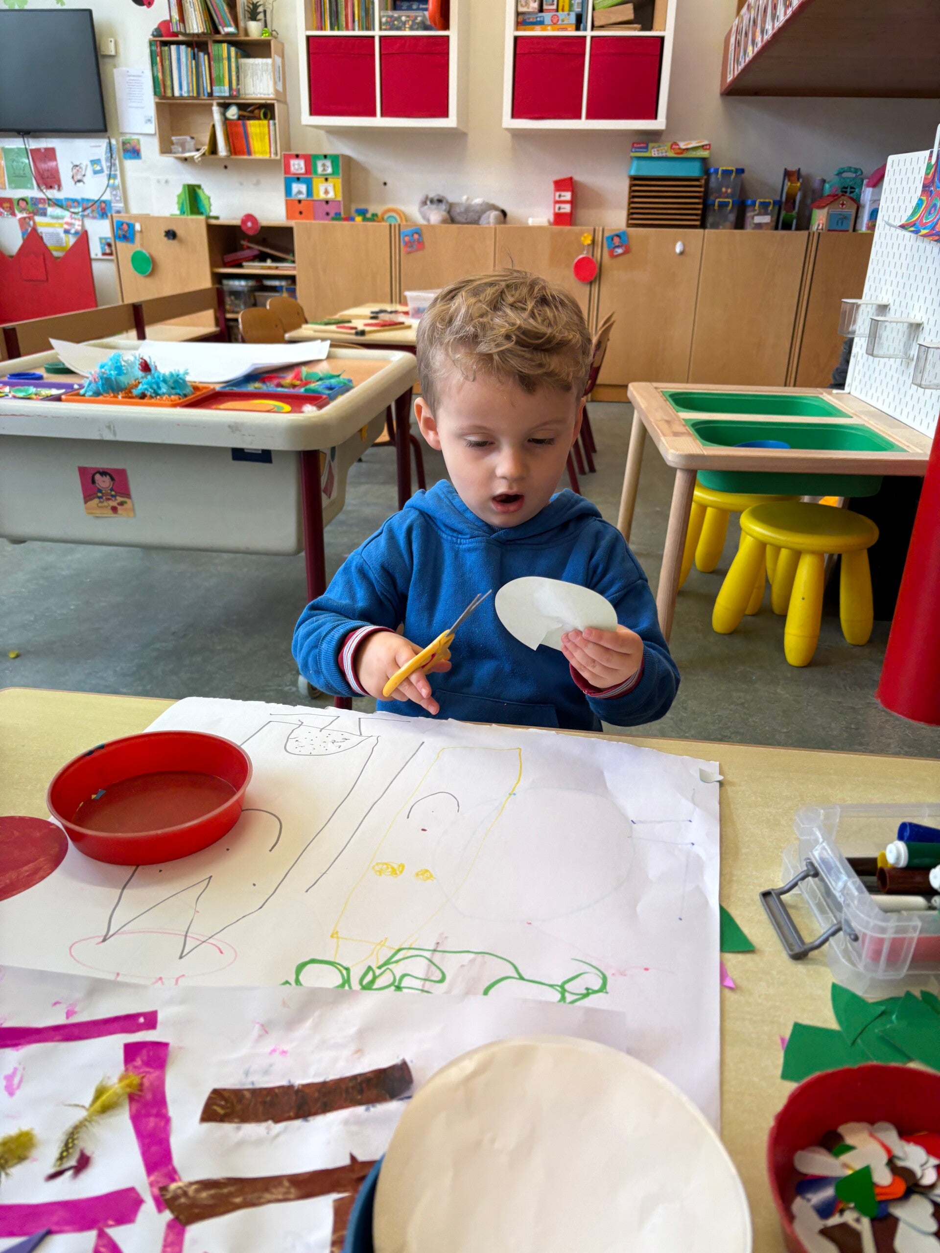 Deze week werden we echte kunstenaars! De vrije teken/knutselhoek ging open en iedereen mocht zich hier uitleven met allerlei materiaal.