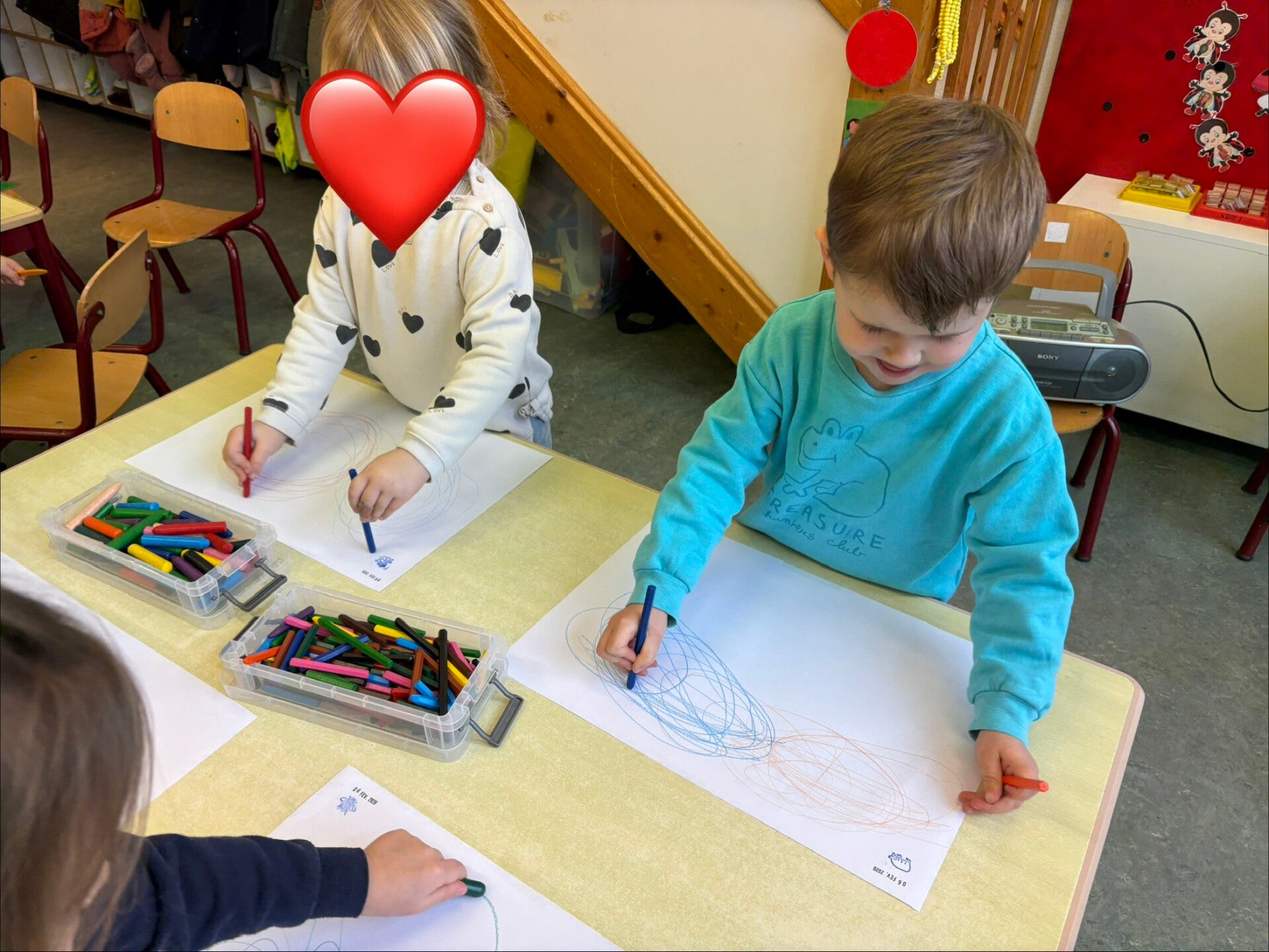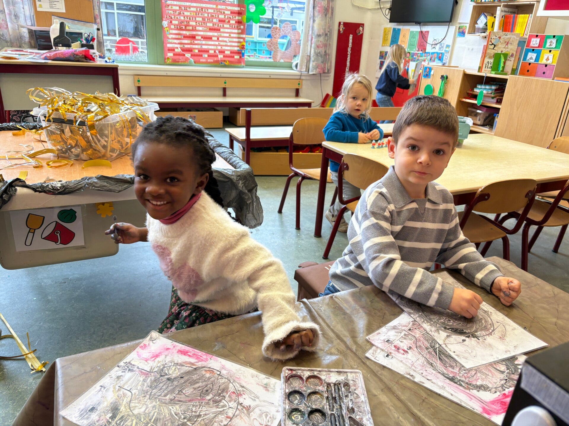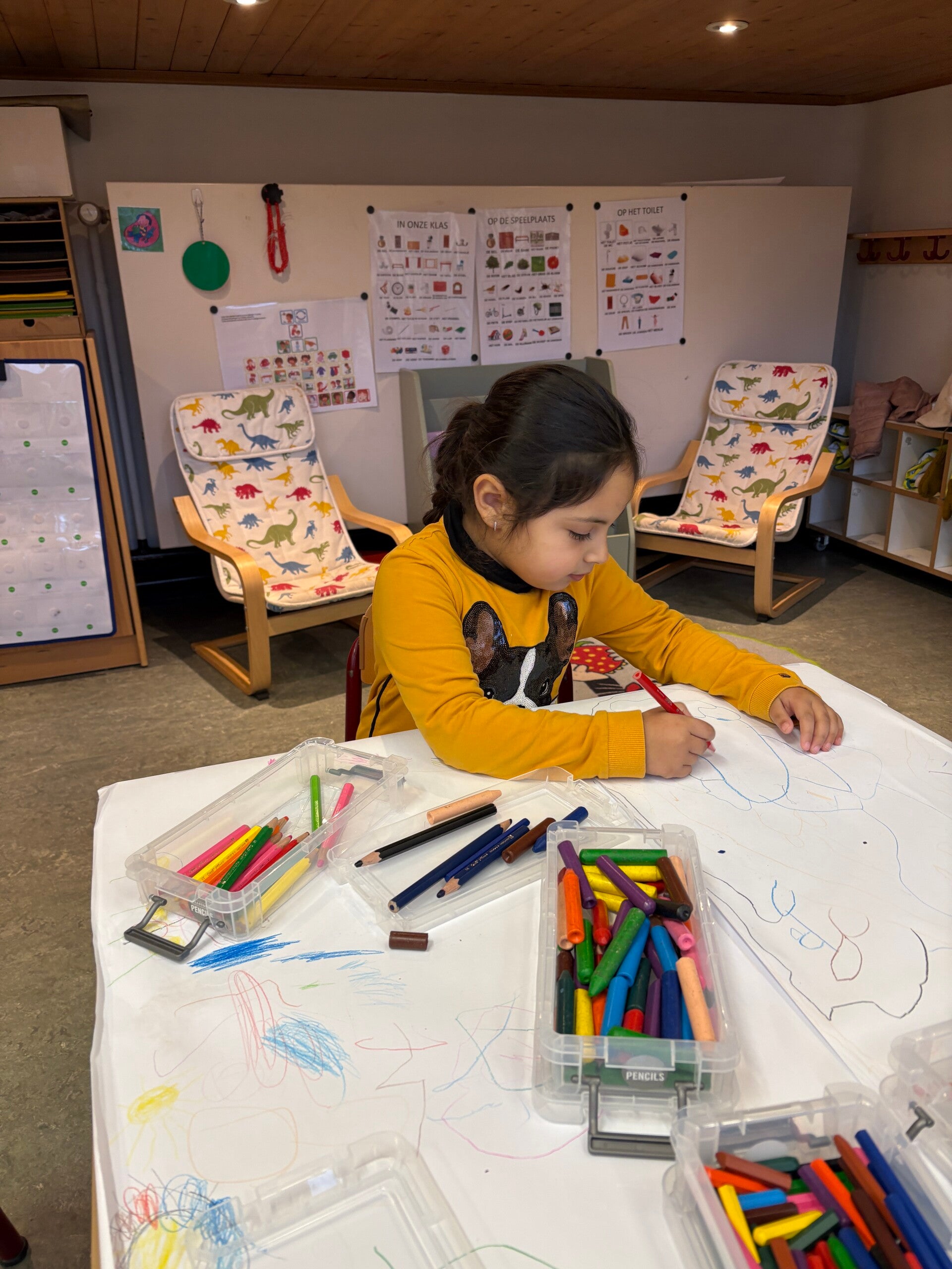 Deze week werden we echte kunstenaars! De vrije teken/knutselhoek ging open en iedereen mocht zich hier uitleven met allerlei materiaal.