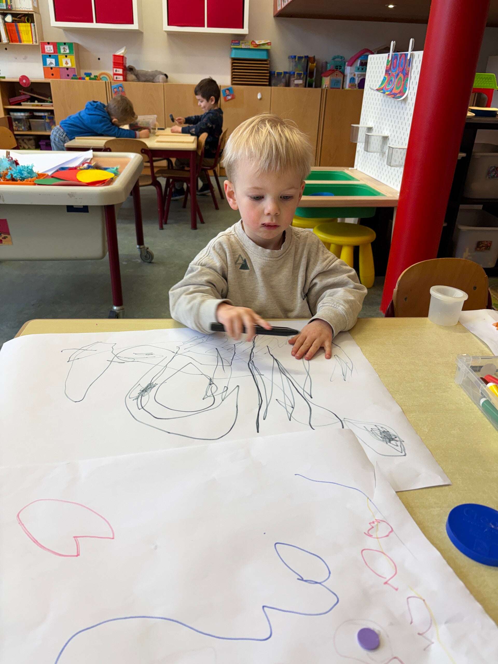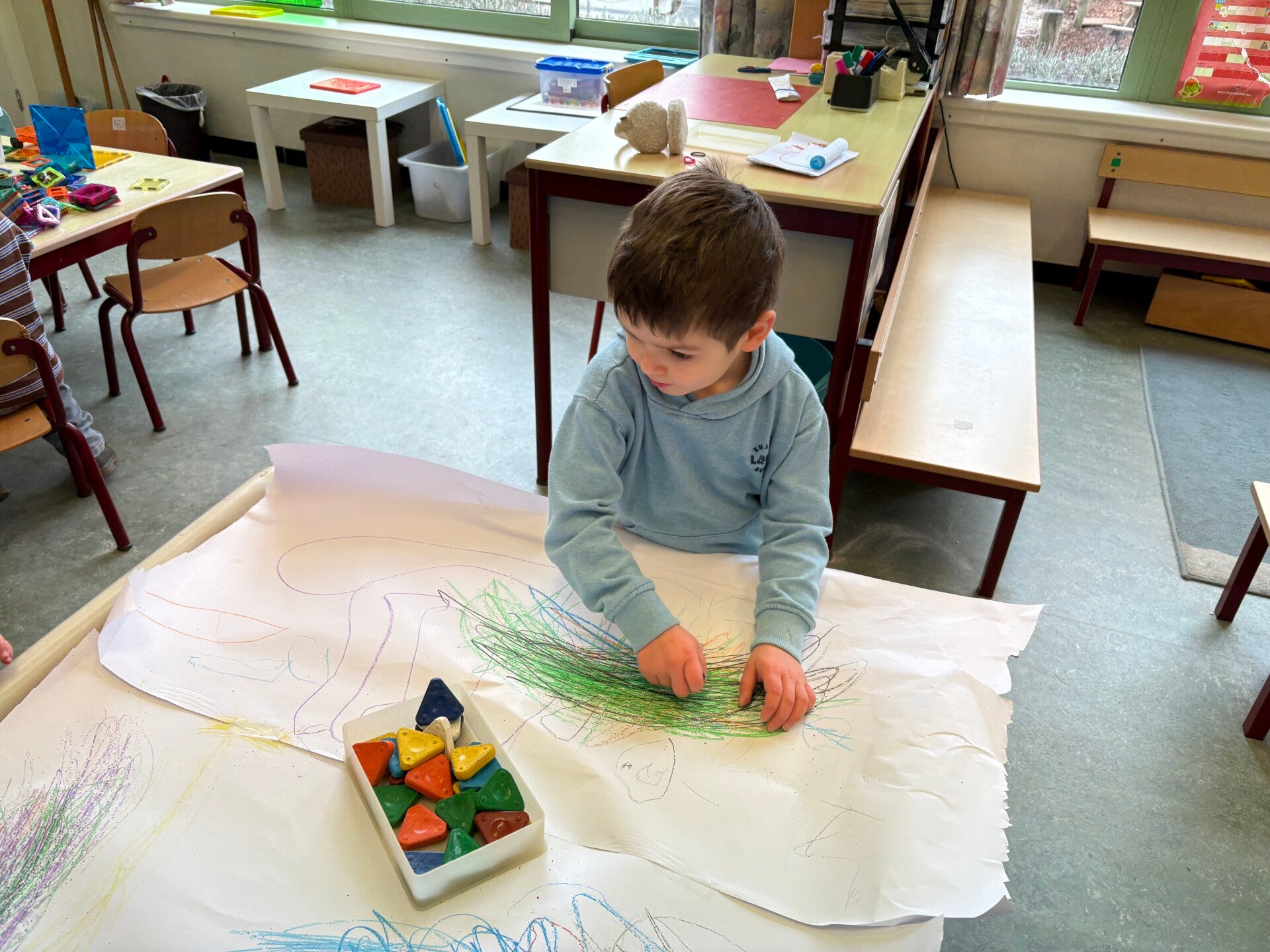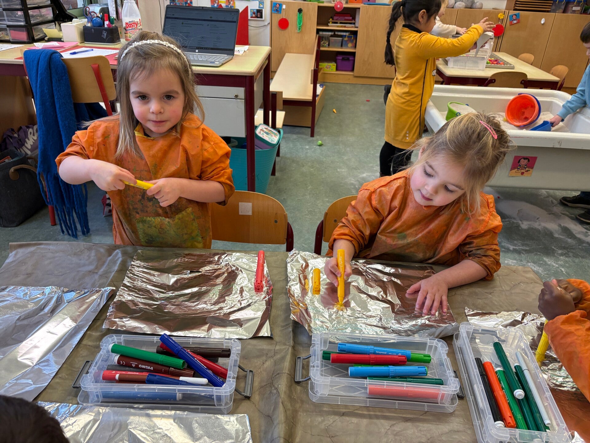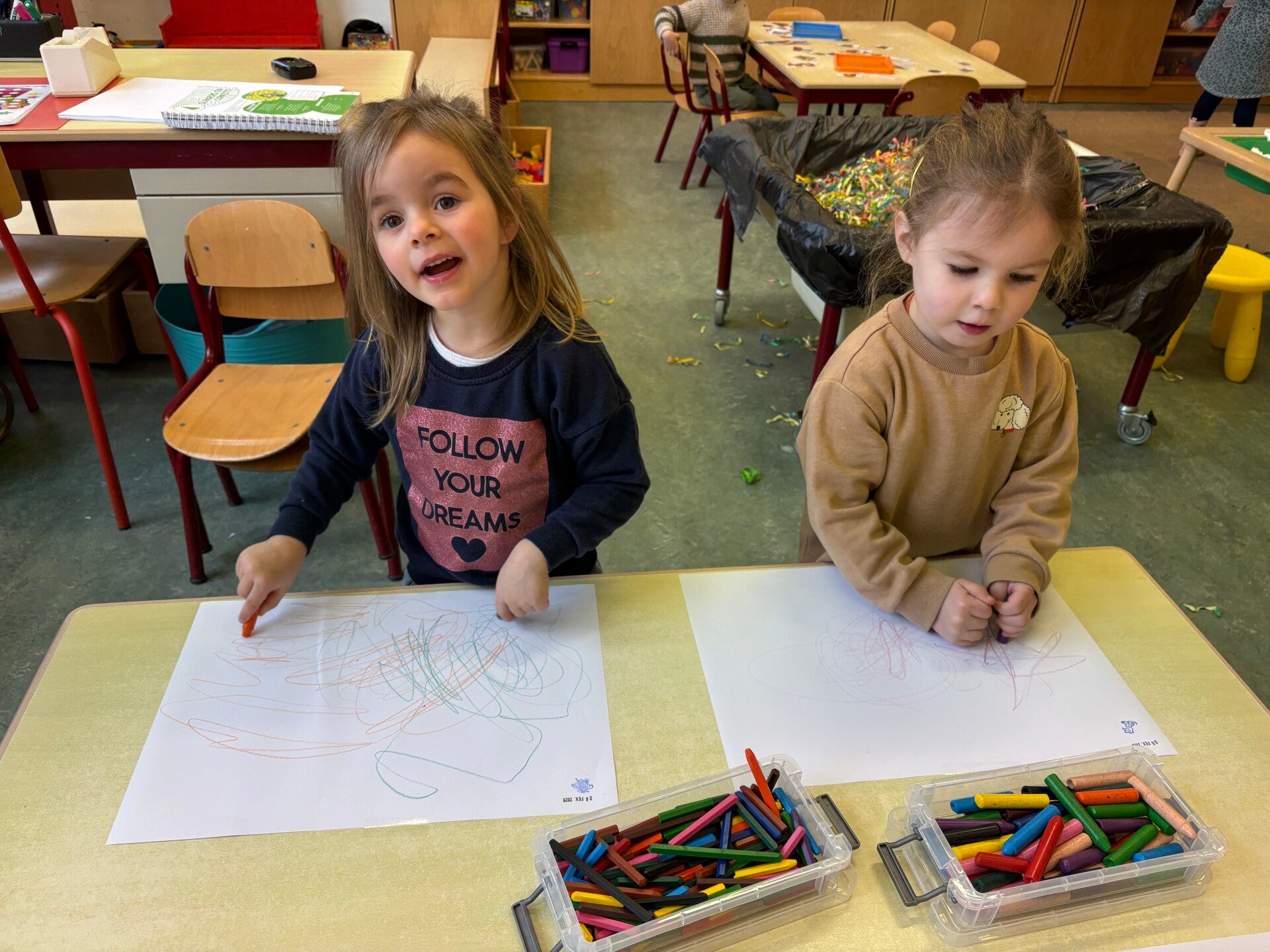 Deze week werden we echte kunstenaars! De vrije teken/knutselhoek ging open en iedereen mocht zich hier uitleven met allerlei materiaal.