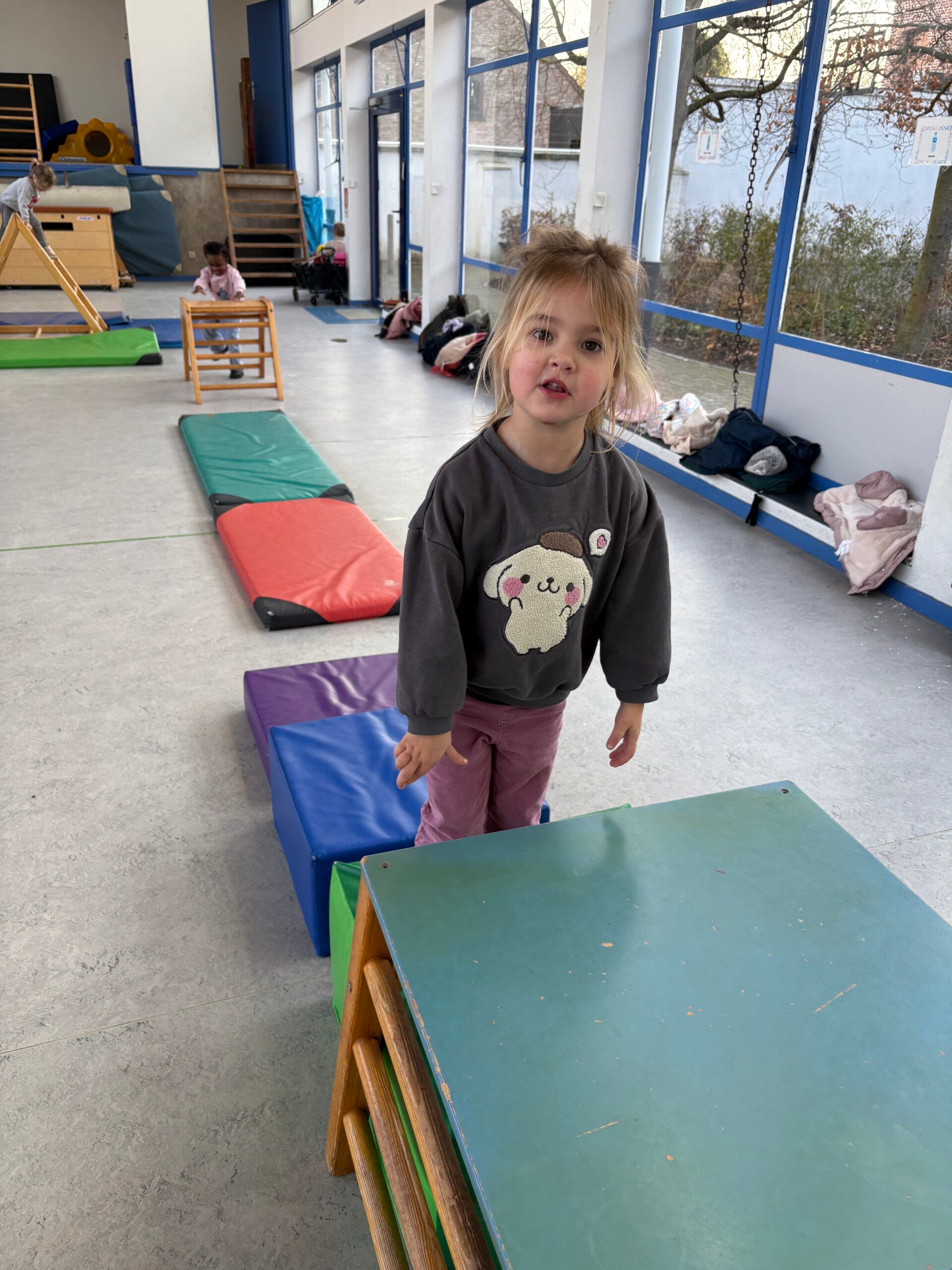 We gingen samen met onze juf en Juf Jolina en haar vriendjes turnen.
