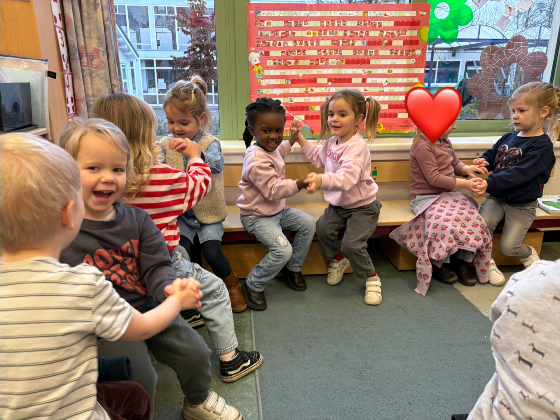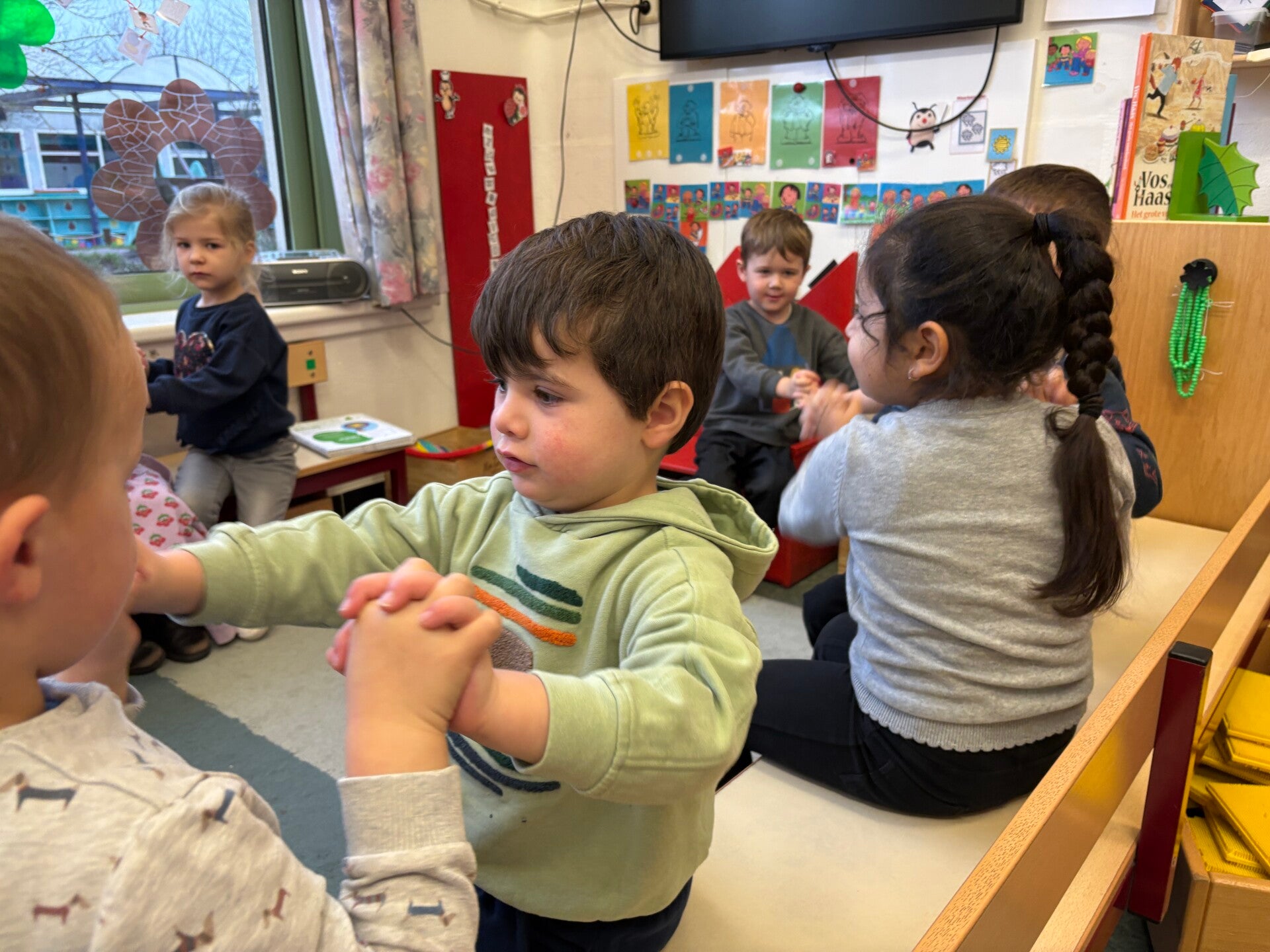 Turnen met de vriendjes van de peuterklas