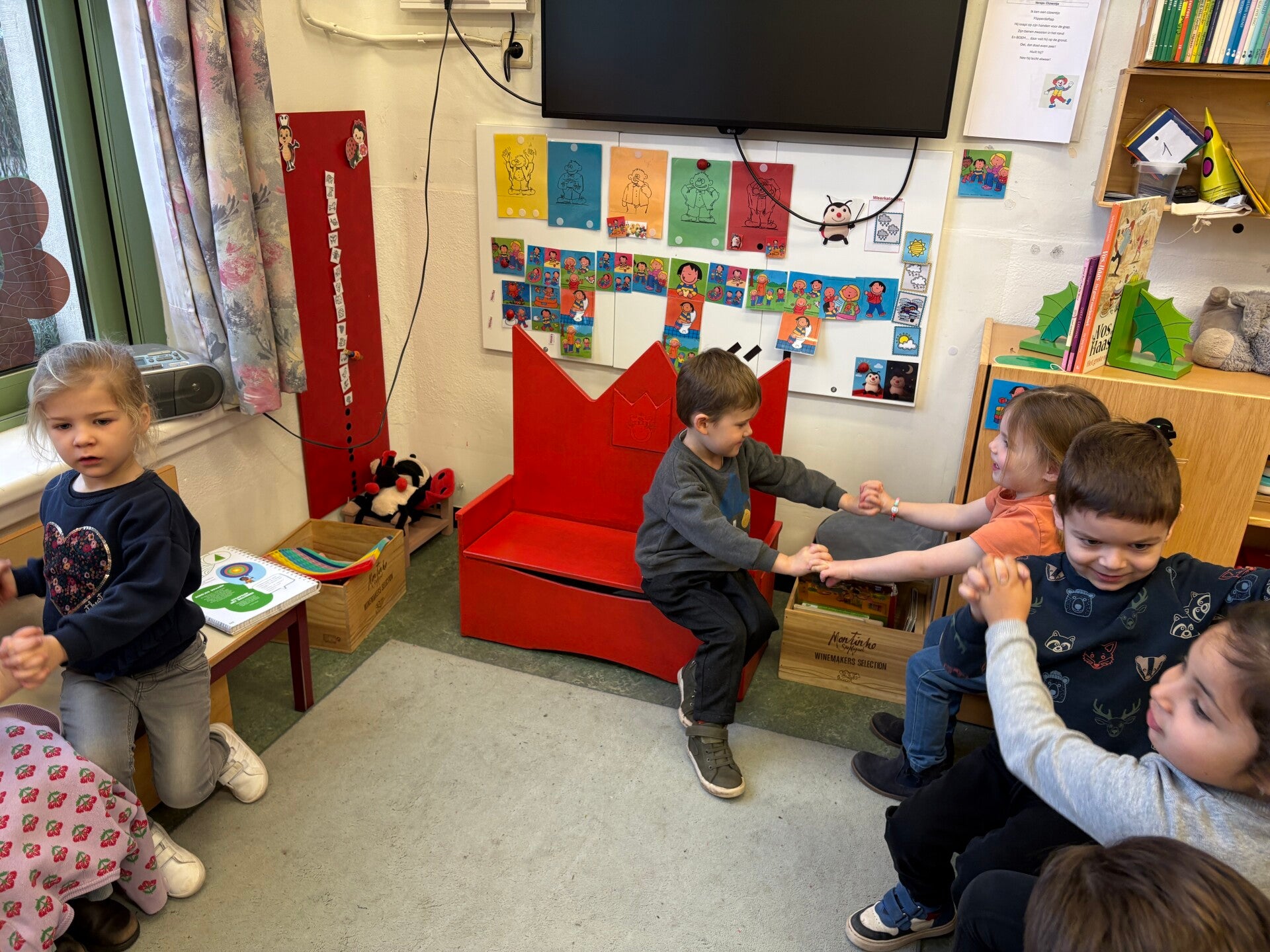 Joepie , eindelijk was het zo ver! De Sint & pieten kwamen aan op onze school. We brachten hen dan ook een leuk bezoekje waar we een liedje zongen en een dansje deden. Onze vriendjes die wilden, mochten ook een foto maken dichtbij de Sint!