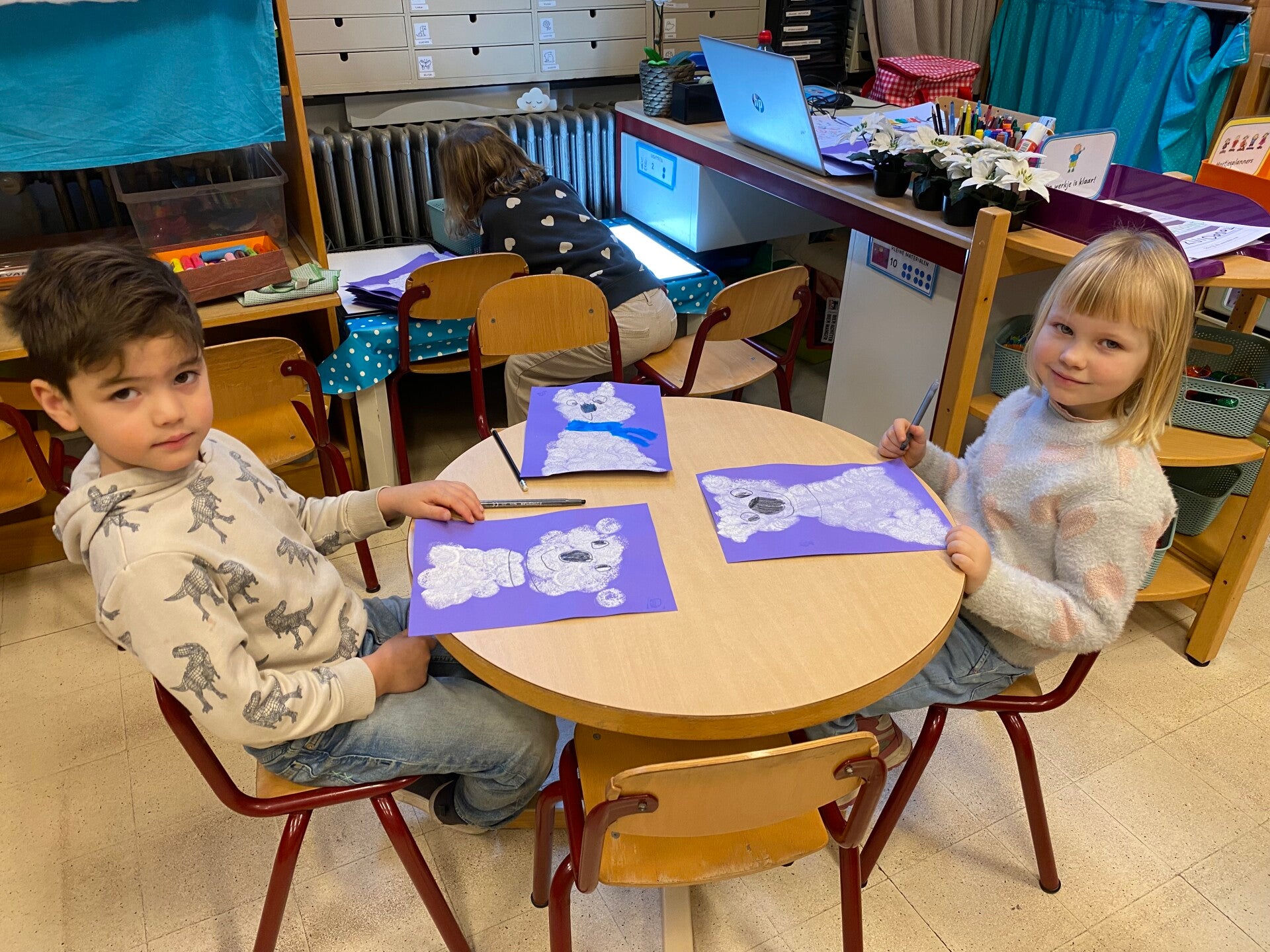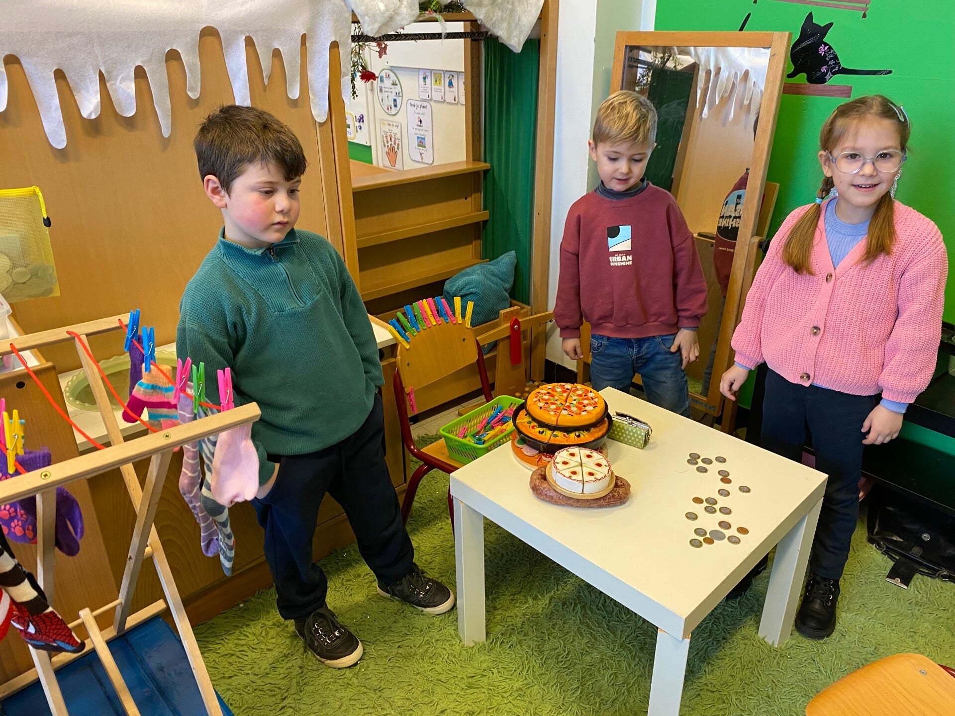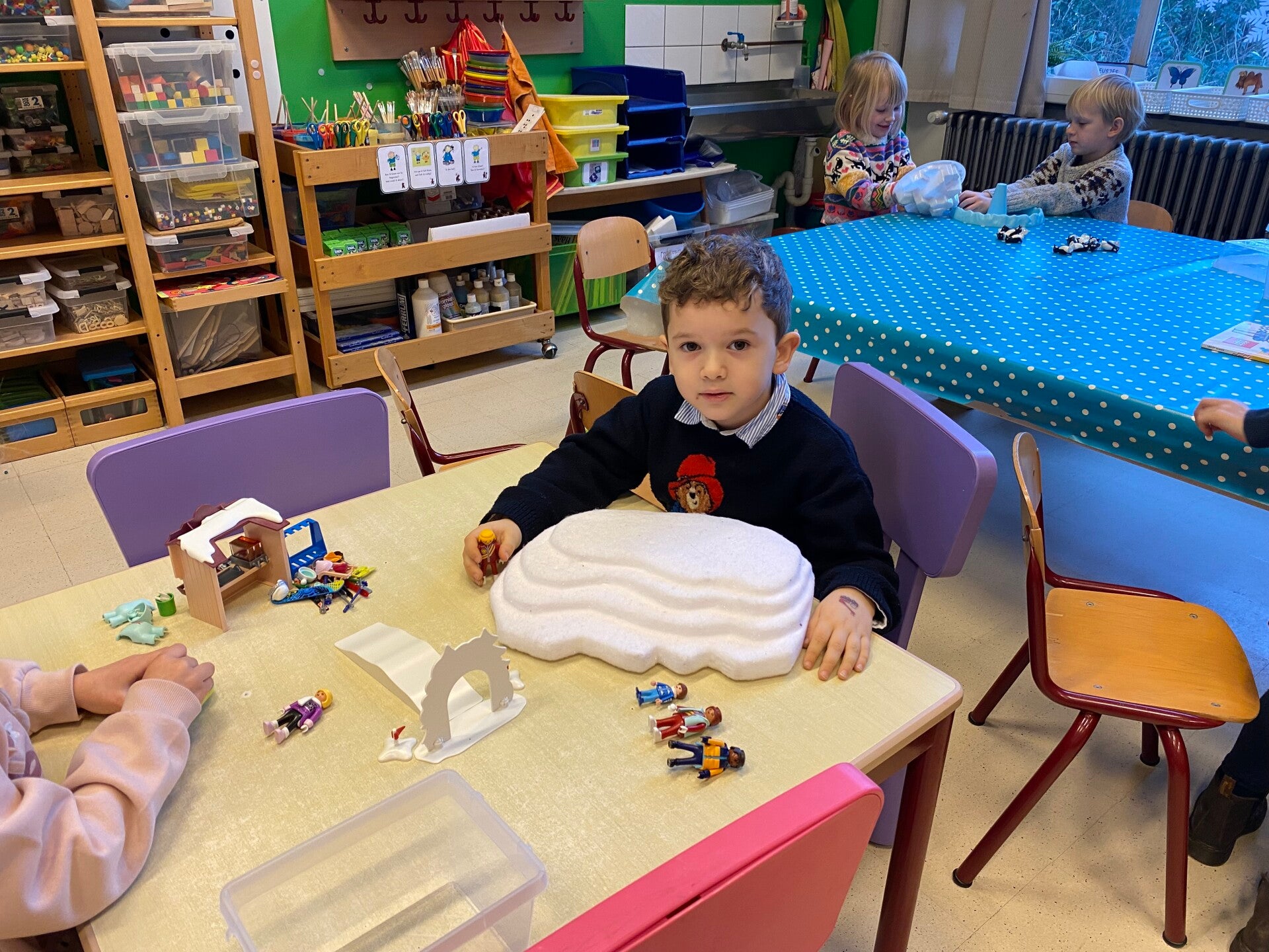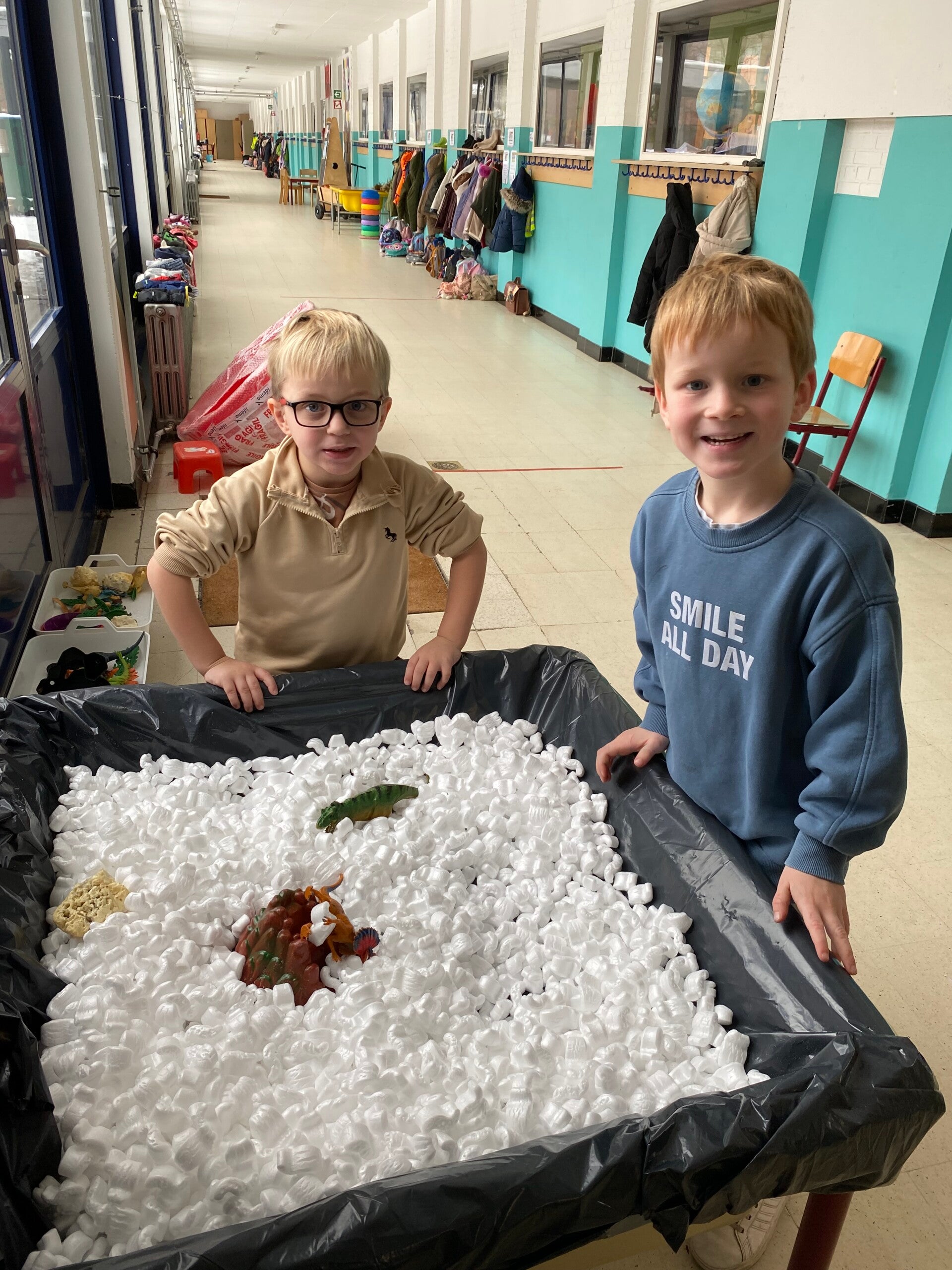 sneeuw op de straten en sneeuw in onze klas, gewoon omdat het winter was!