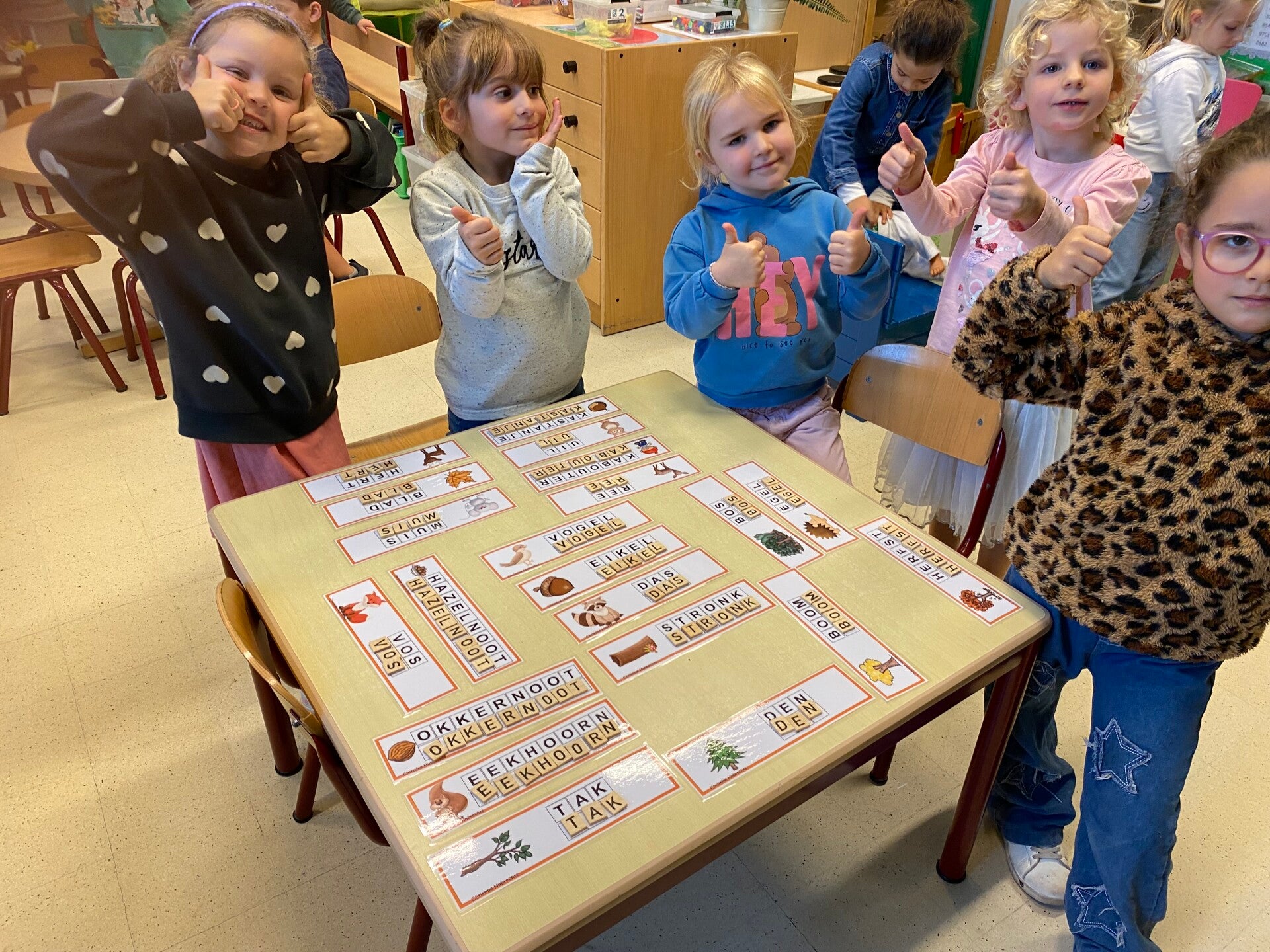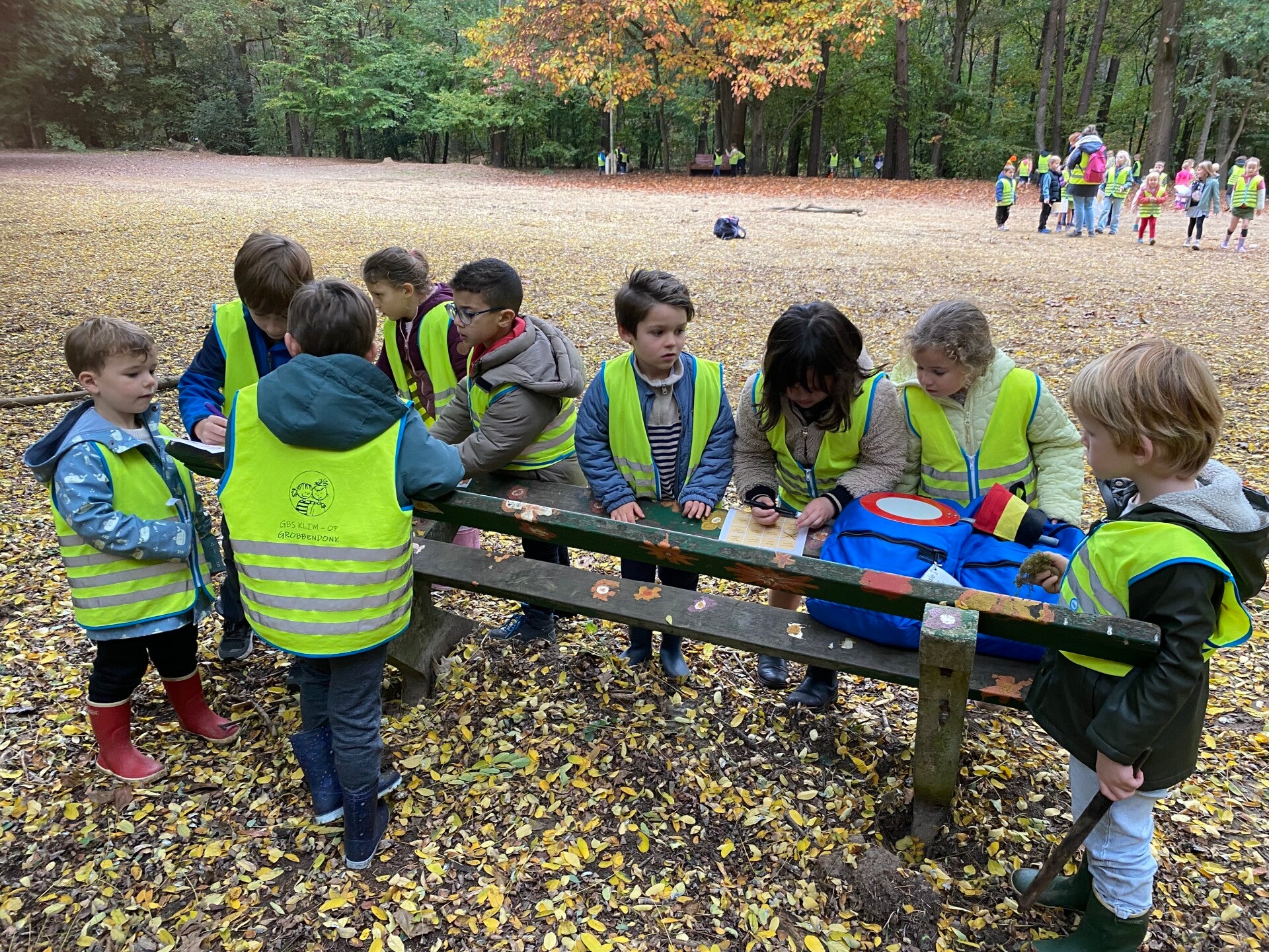 vriendjesopdrachten in het bos met klas 1 en klas 2