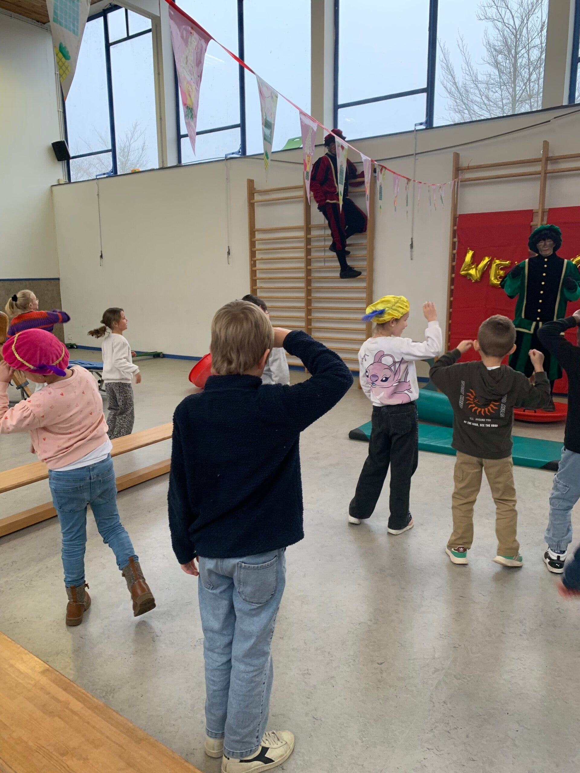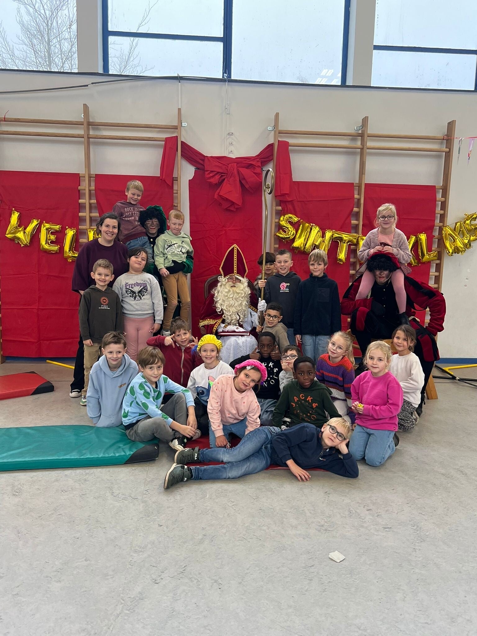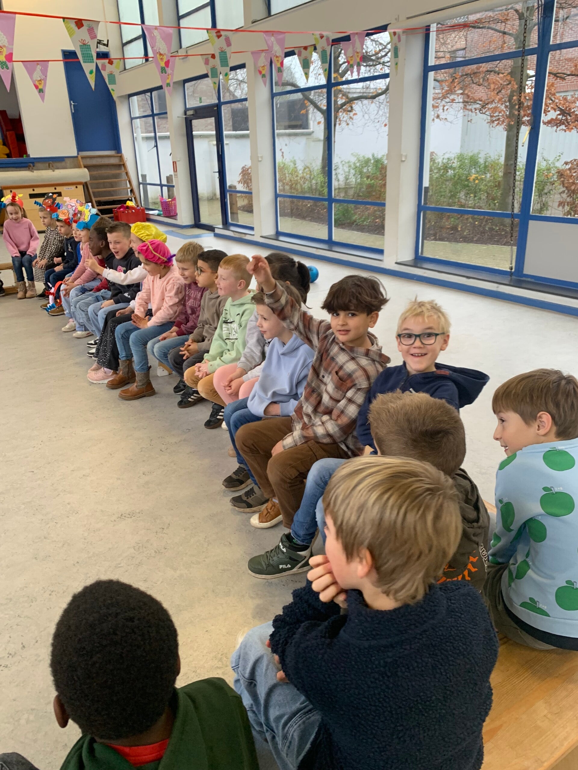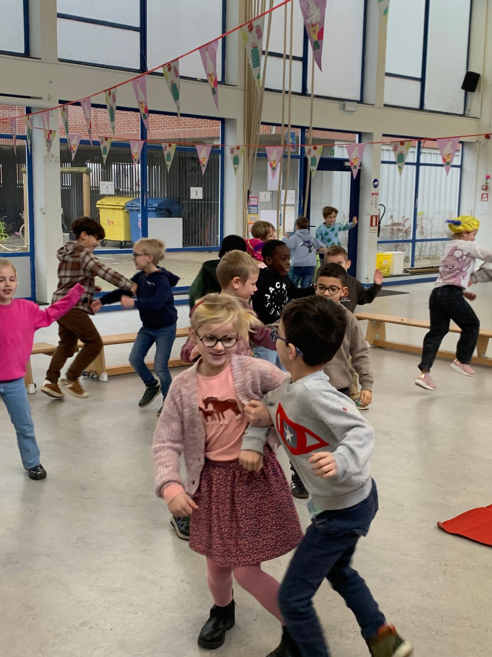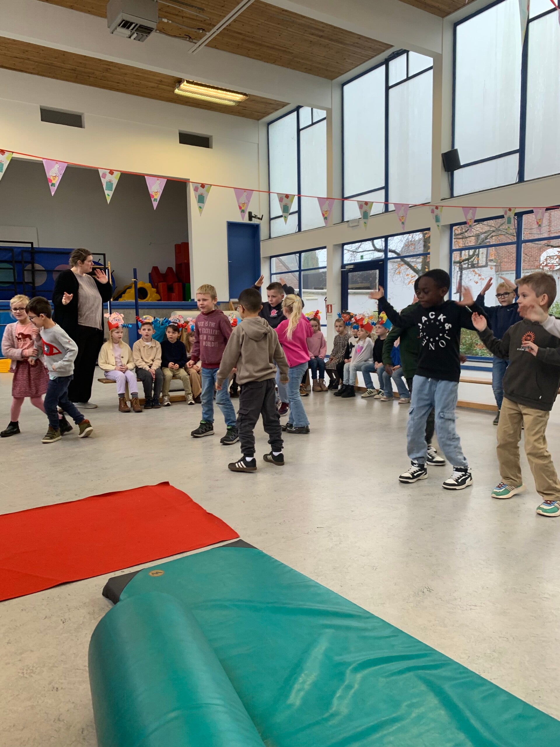 Niet alle kindjes van onze klas staan op onderstaande foto's. Er werden namelijk extra groepen gecreëerd om het spelplezier optimaal te laten verlopen. Deze kindjes zaten in een groepje bij meester Willem of meester Dirk.