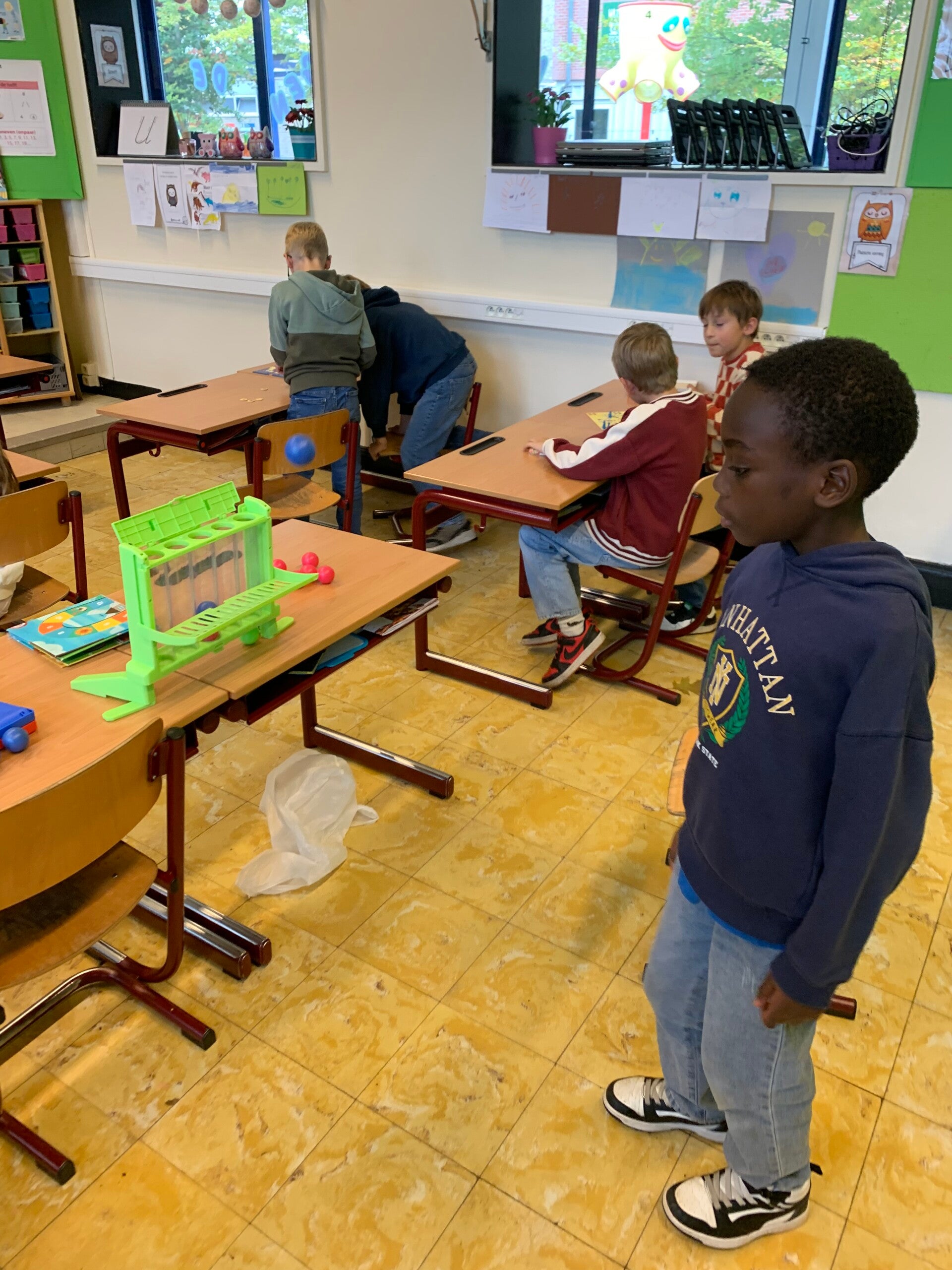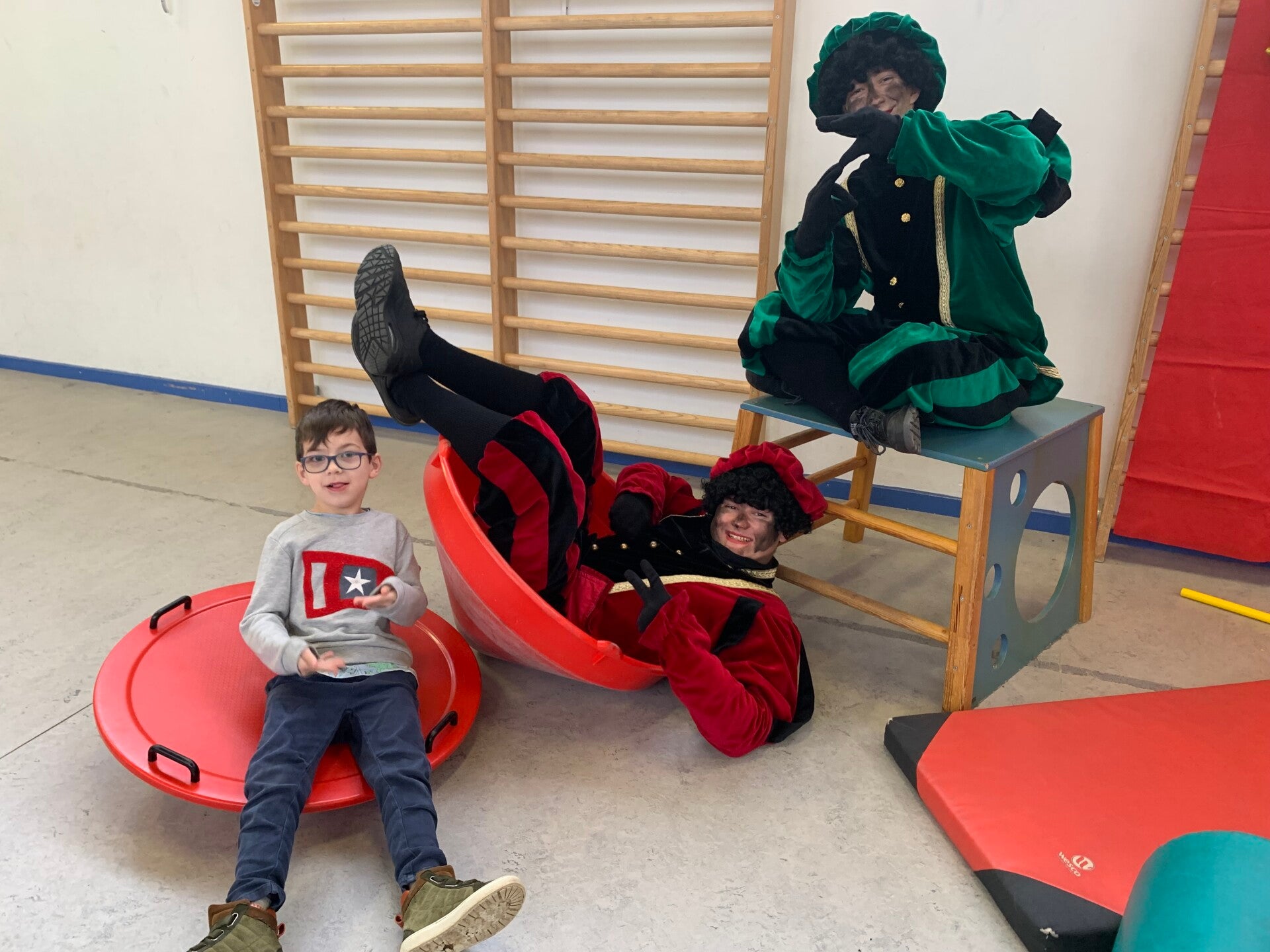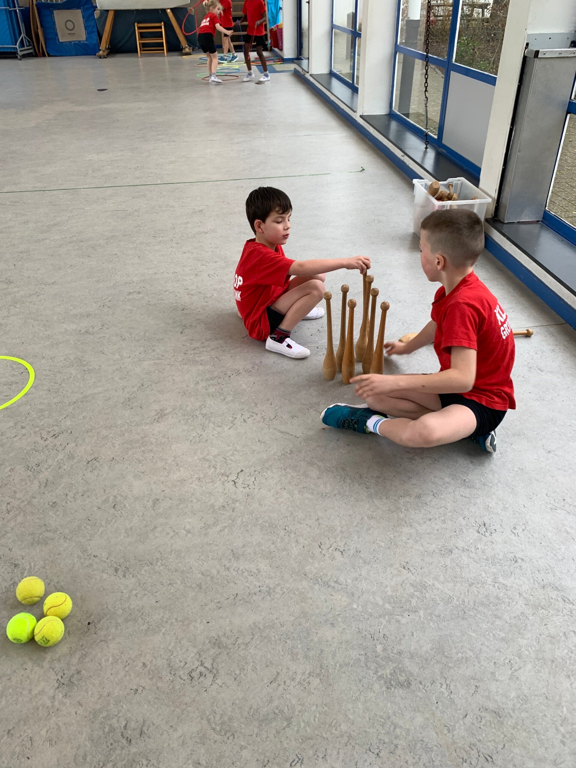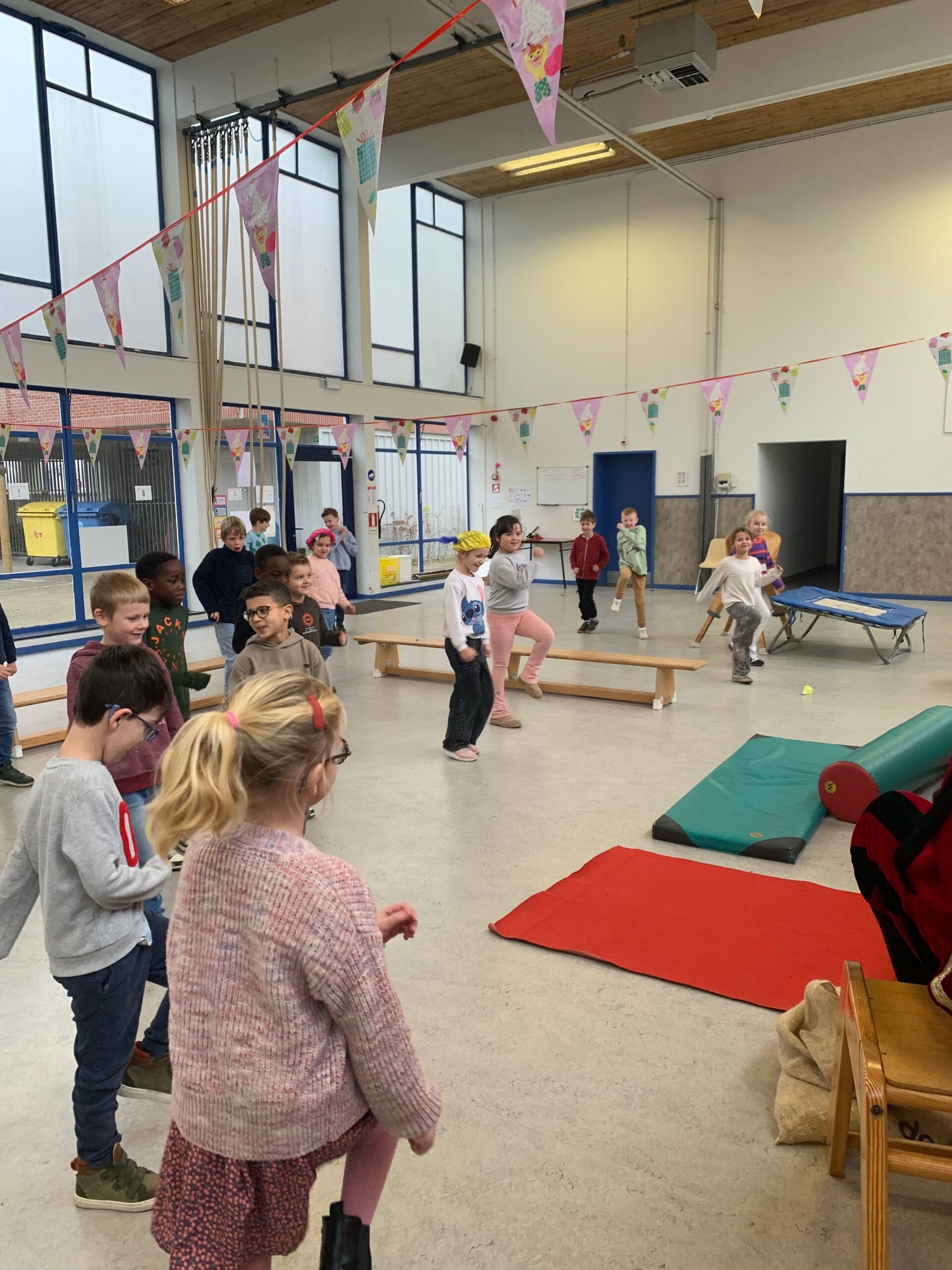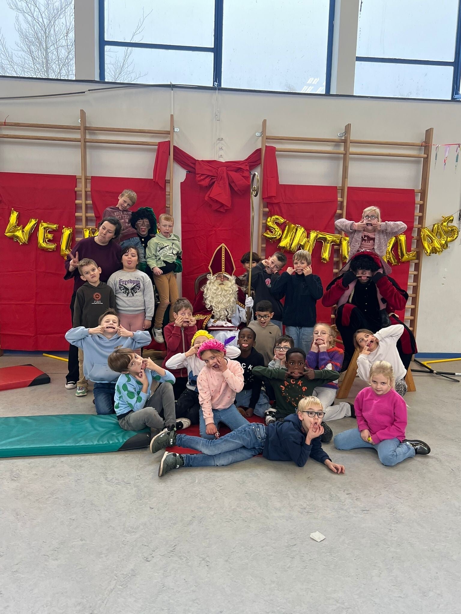 Niet alle kindjes van onze klas staan op onderstaande foto's. Er werden namelijk extra groepen gecreëerd om het spelplezier optimaal te laten verlopen. Deze kindjes zaten in een groepje bij meester Willem of meester Dirk.