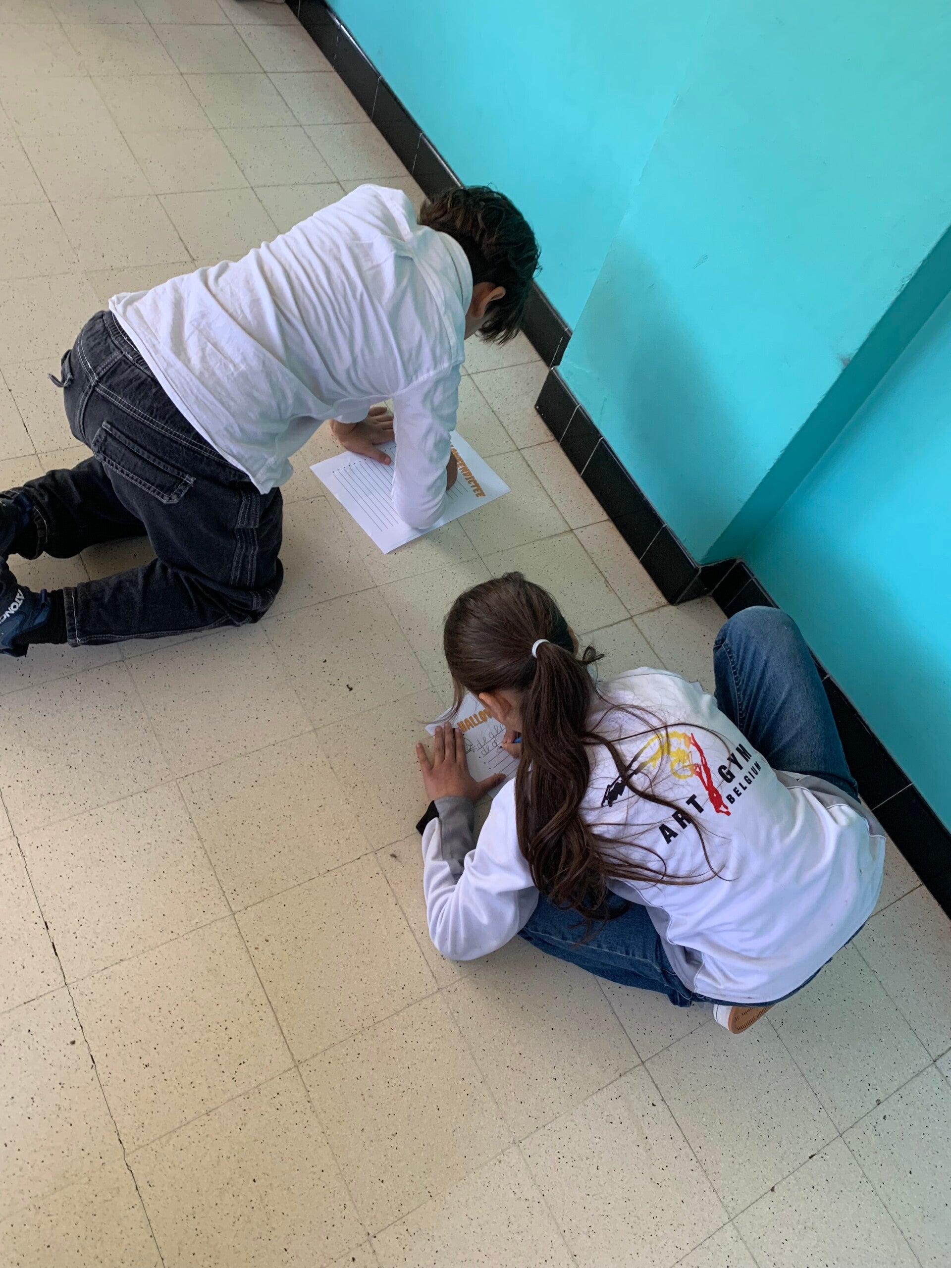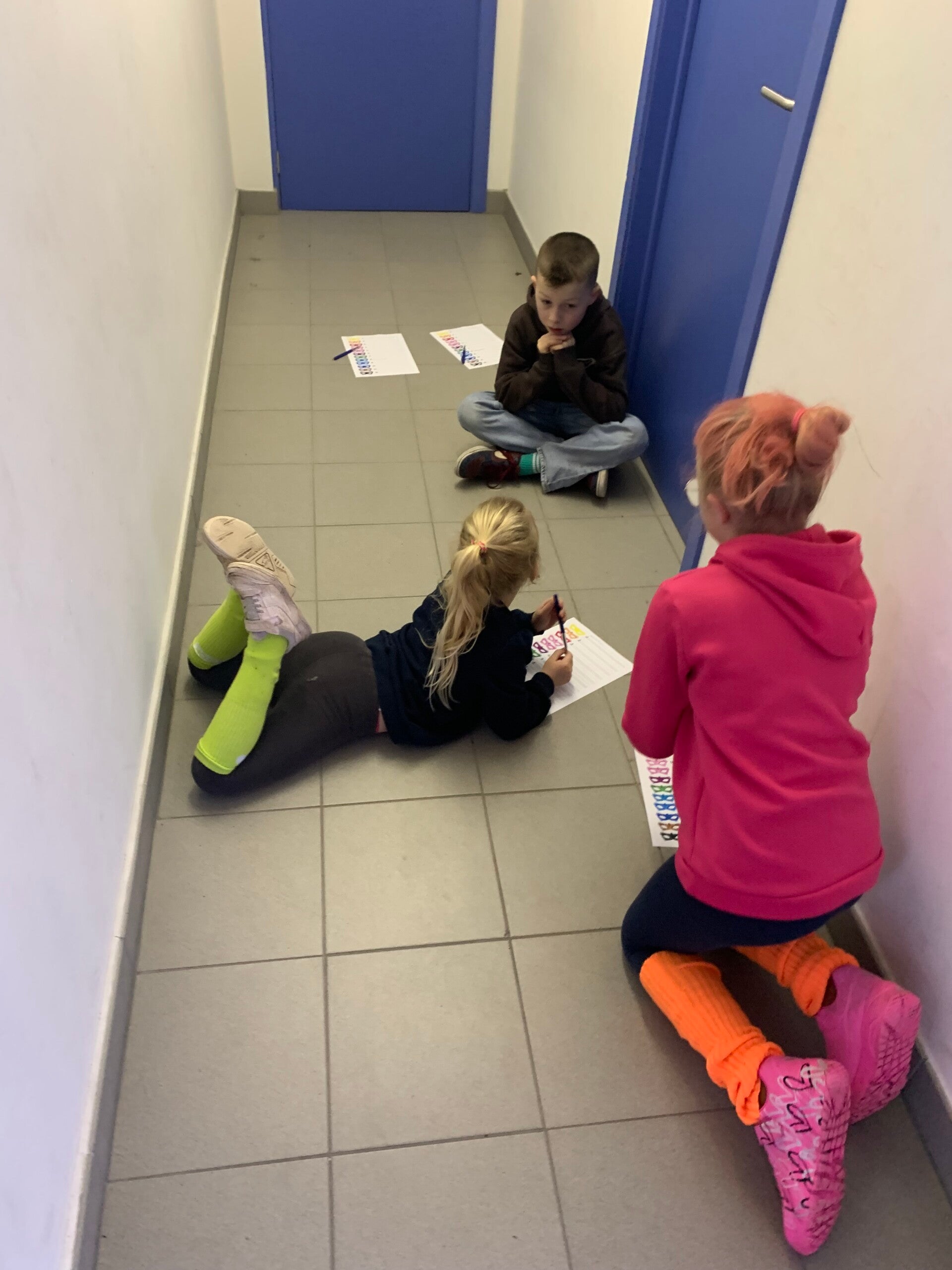 Voor we ons verhaal gingen voorlezen moest er hard geoefend worden. We kozen een gezellig (of soms eerder gek) plekje uit in de klas en oefenden erop los!