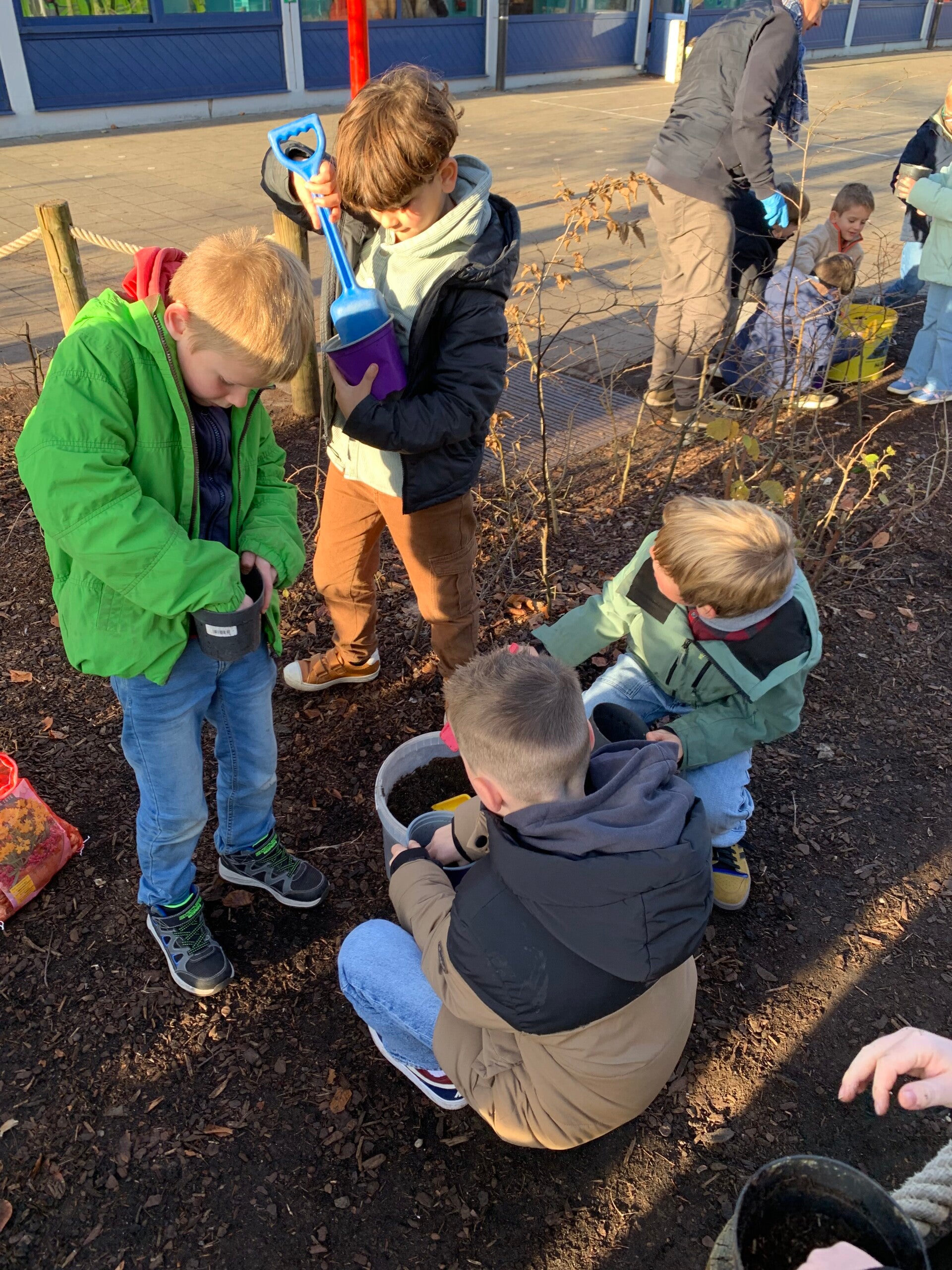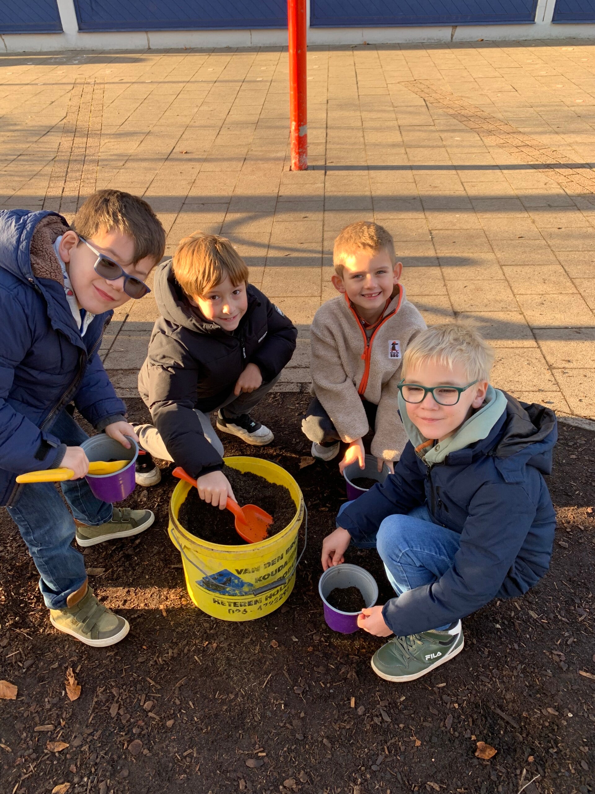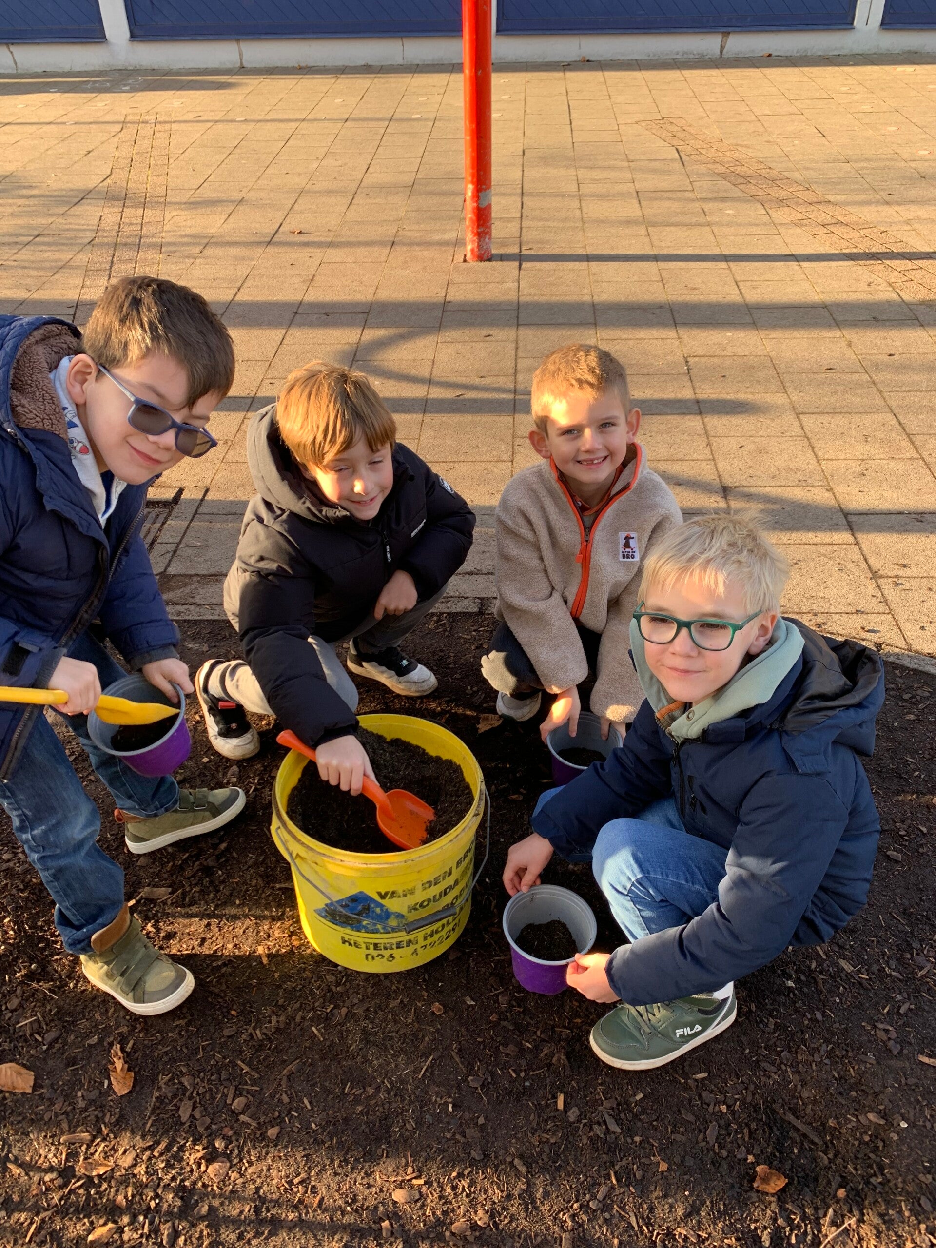 Joepie, het is herfst! Dat betekent tijd om bloembolletjes te planten als we in de lente mooie bloemetjes willen. De papa van juf Lore kwam langs en hielp ons bij al dit plantwerk. Dankjewel!