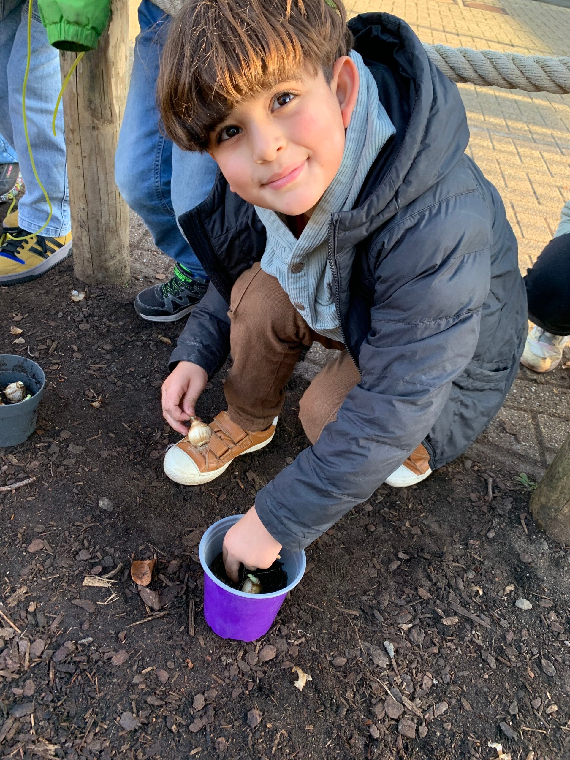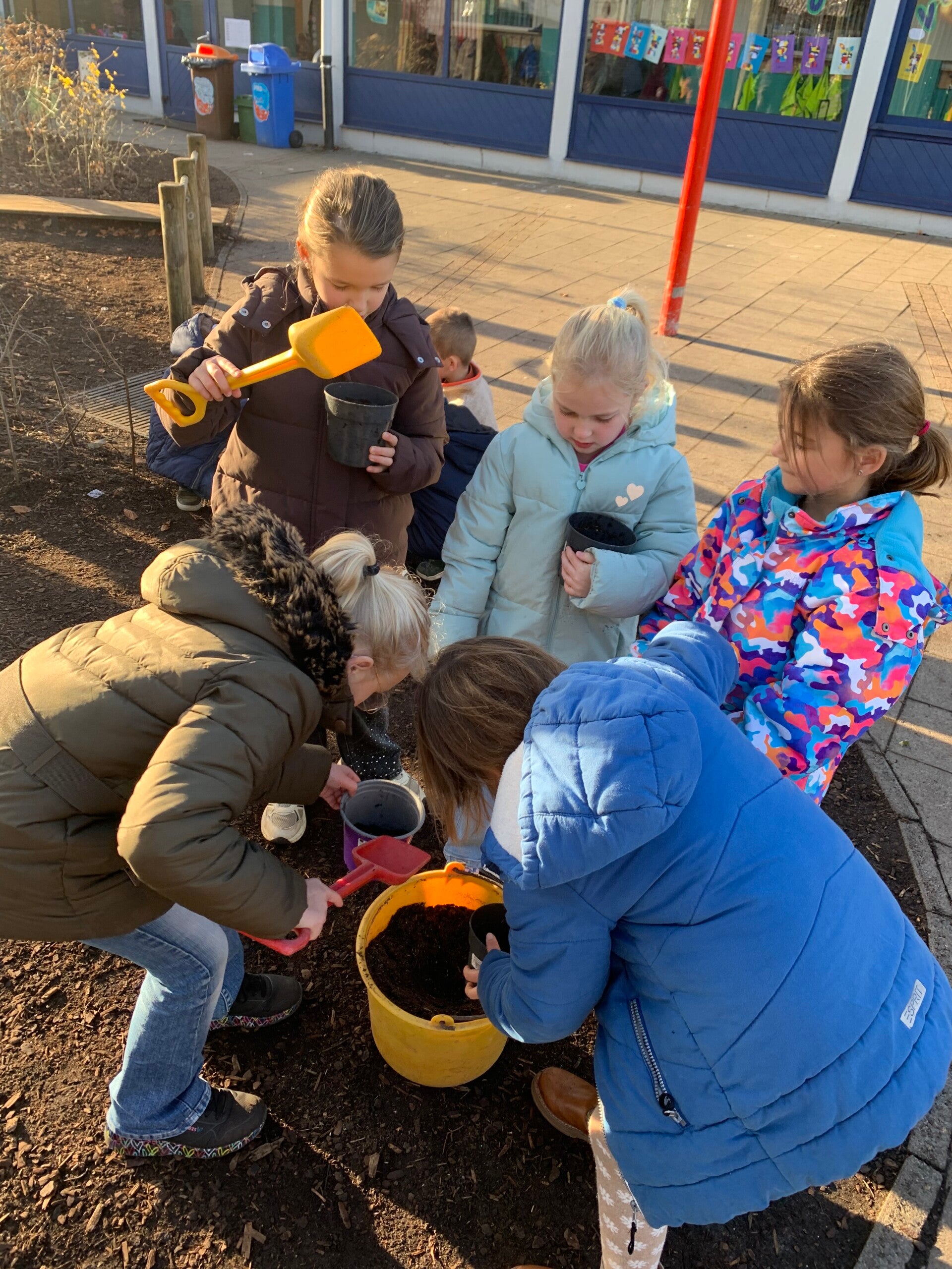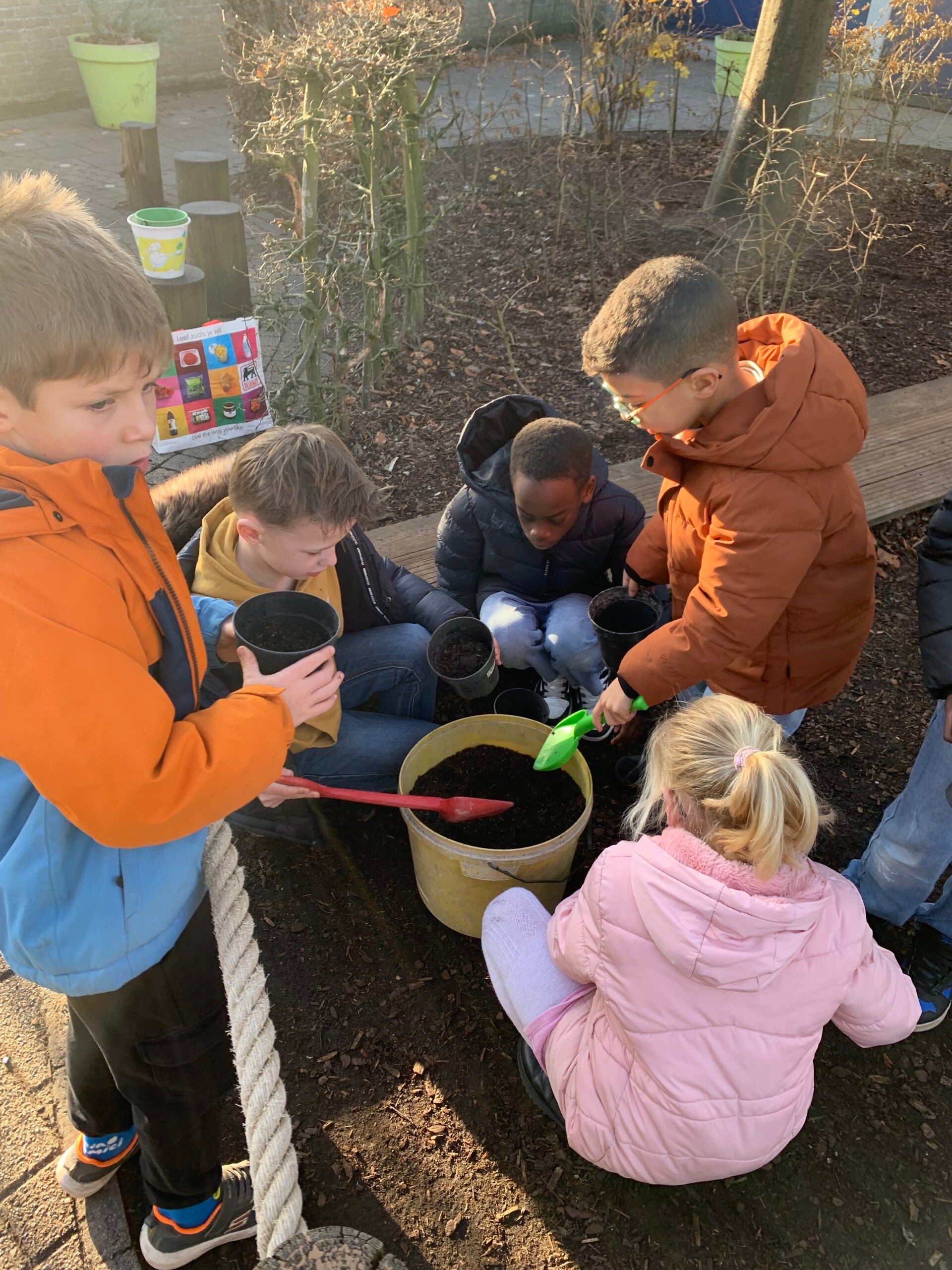 Joepie, het is herfst! Dat betekent tijd om bloembolletjes te planten als we in de lente mooie bloemetjes willen. De papa van juf Lore kwam langs en hielp ons bij al dit plantwerk. Dankjewel!