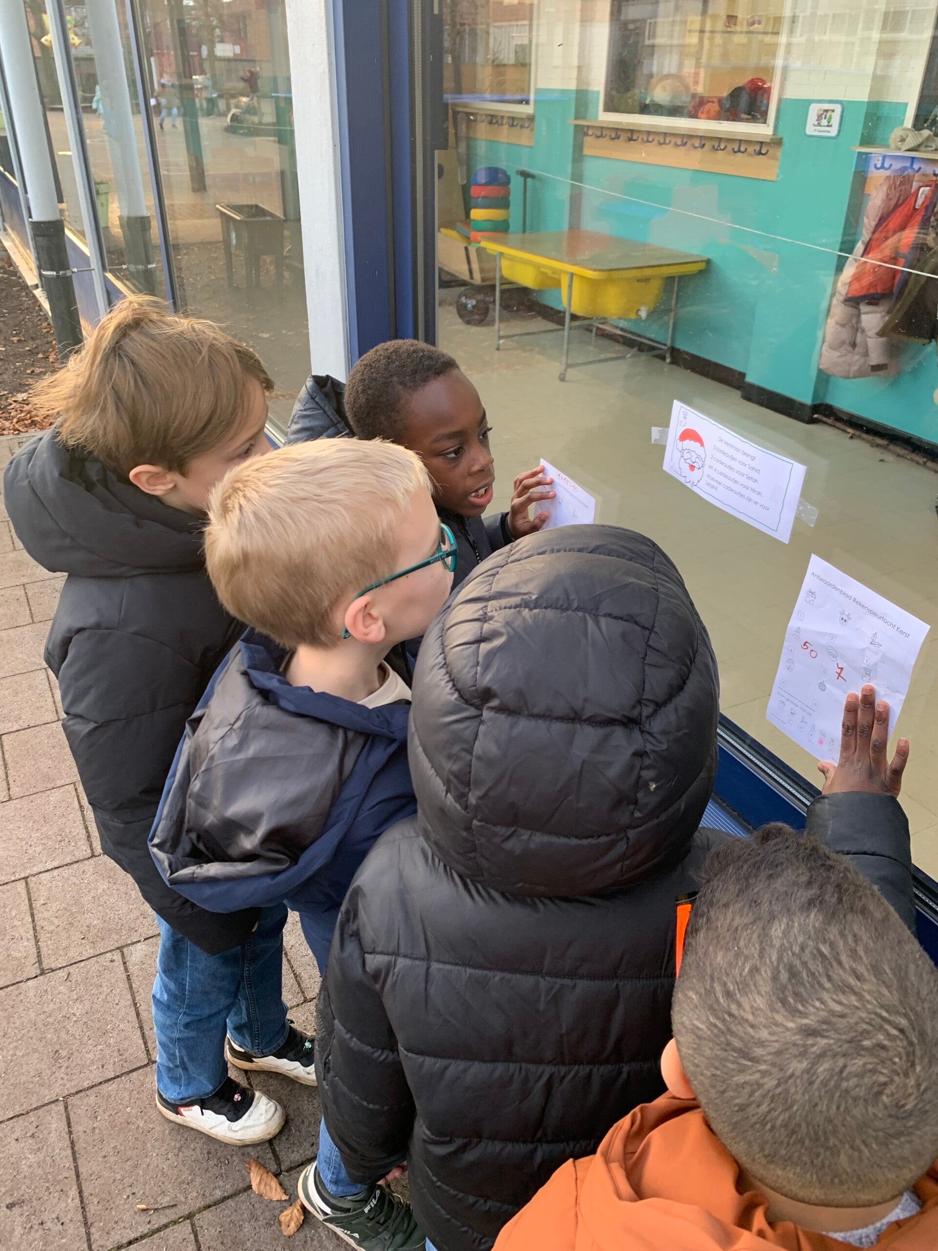 Voor de kerstvakantie deden we een heuse zoektocht. We zochten, rekenden en liepen erop los. Wat fijn om eens op een andere manier de leerstof te herhalen!