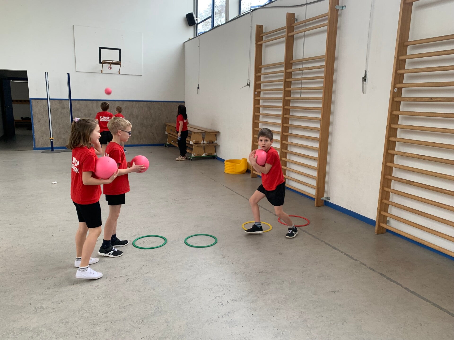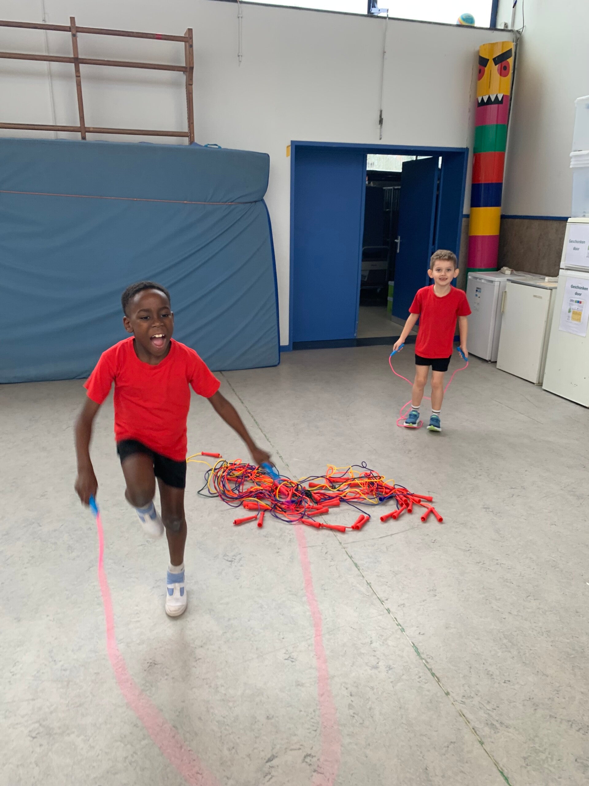 Meester Willem zit in de bergen met de kindjes van het 6de leerjaar, dus neemt de juf de turnlessen over. Als dat maar goed komt...