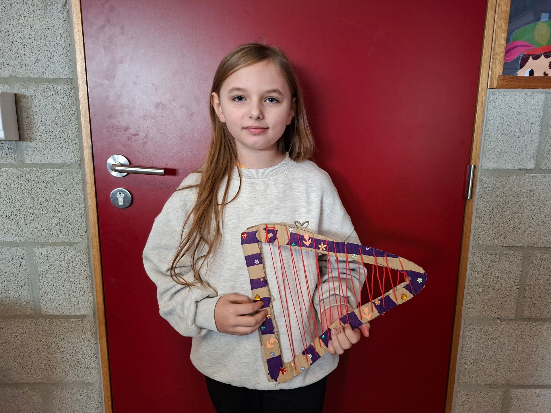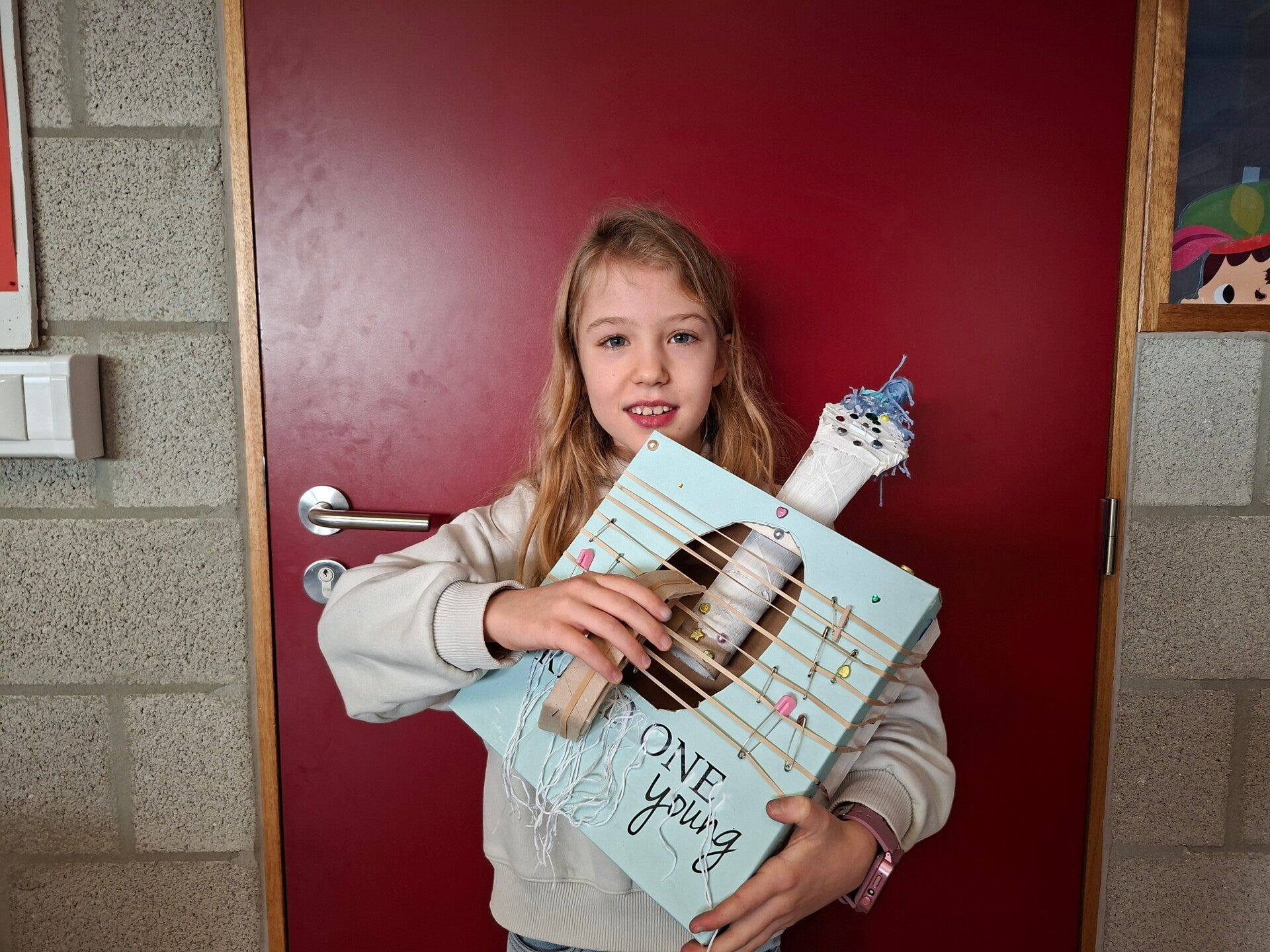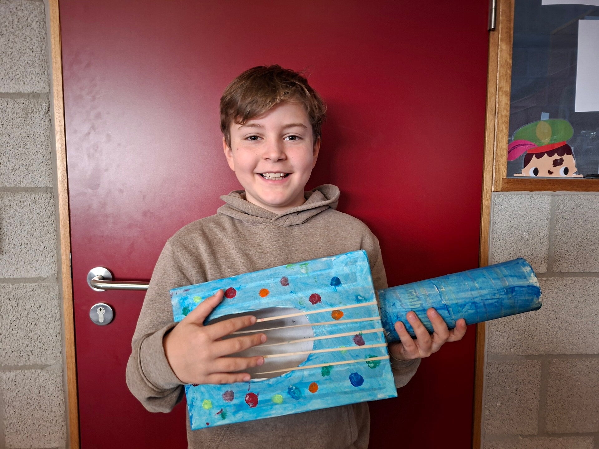 Met allerlei wegwerpmateriaal, maakten we prachtige muziekinstrumenten. Fluiten, schudflessen, gitaren, een grote trom, ... Er werd zelfs een viool en een harp geknutseld!