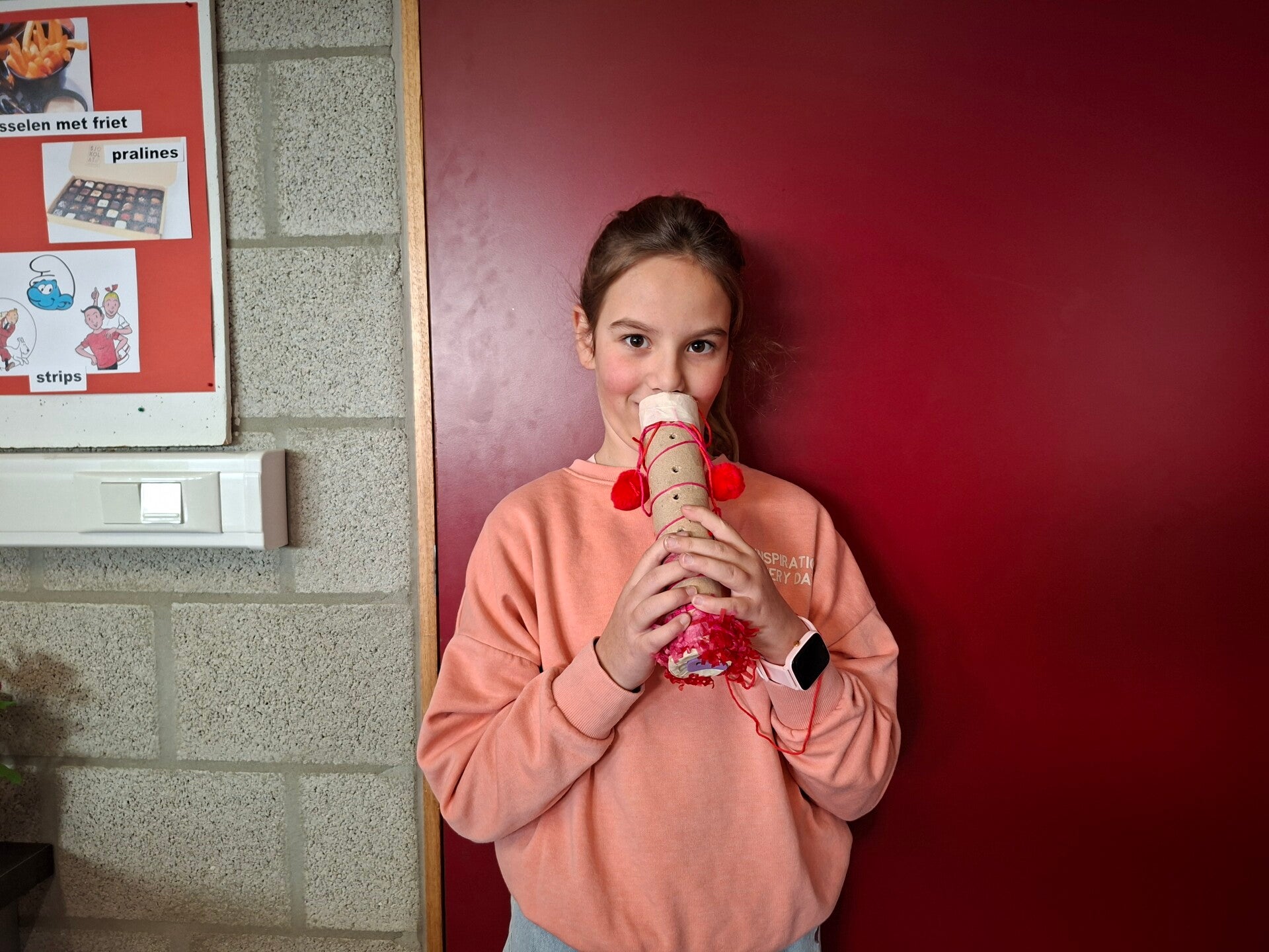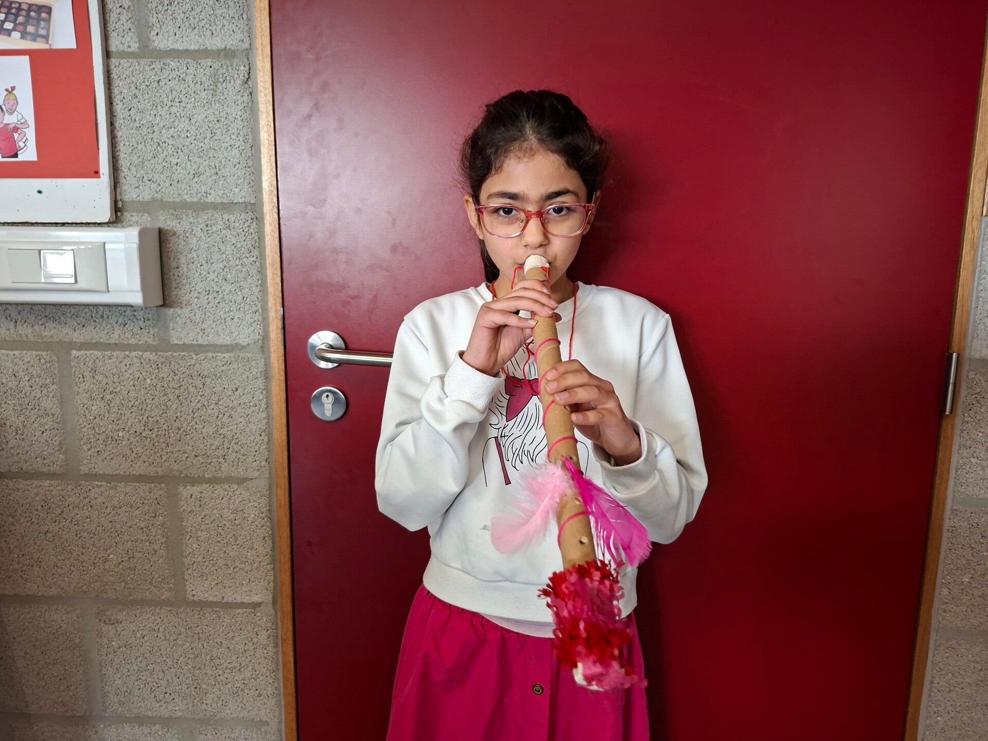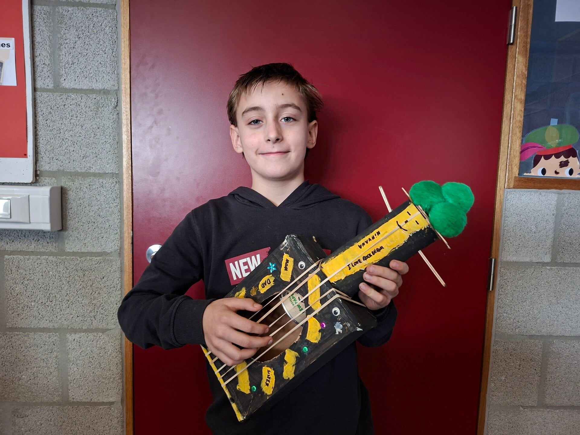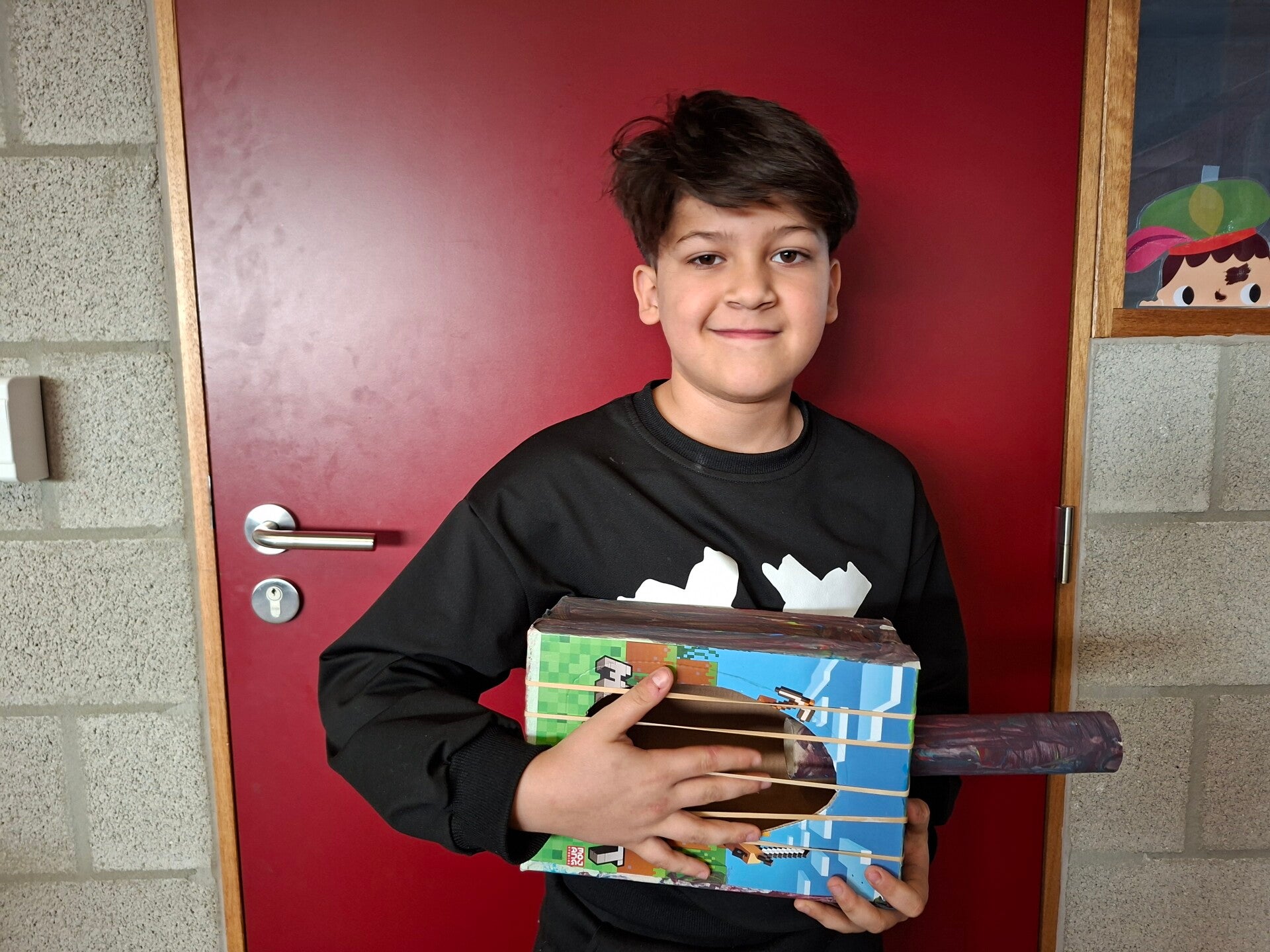 Met allerlei wegwerpmateriaal, maakten we prachtige muziekinstrumenten. Fluiten, schudflessen, gitaren, een grote trom, ... Er werd zelfs een viool en een harp geknutseld!