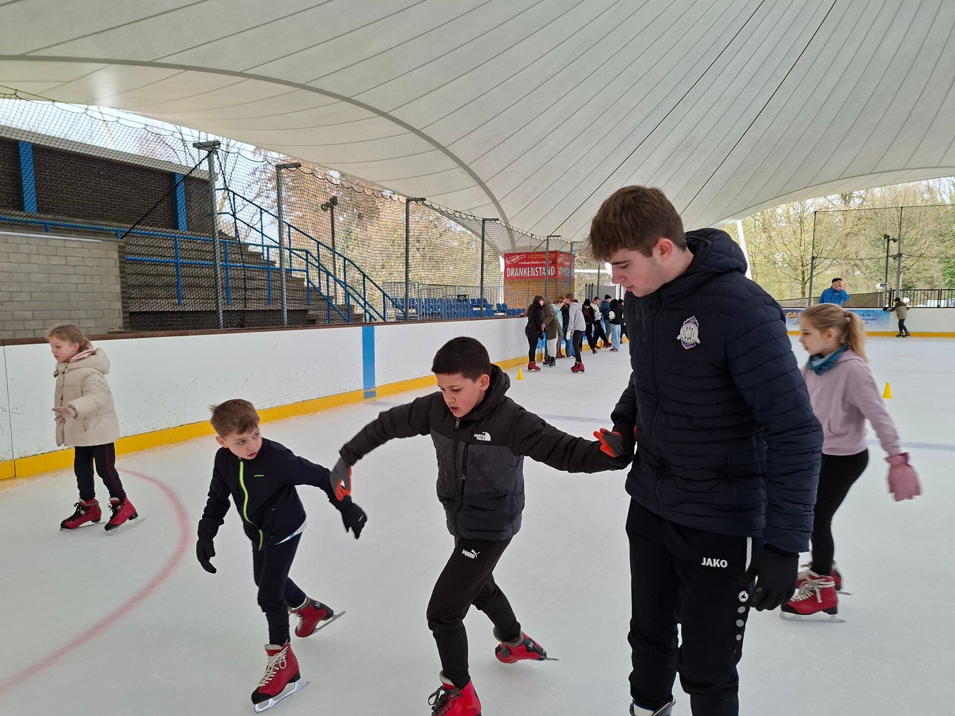 Eerst hielpen we de kleinere kinderen om hun schaatsen vast te binden, waarna we zelf schaatsen aantrokken. En dan het ijs op! Iedereen deed echt zijn best om het schaatsen onder de knie te krijgen of om zijn knapste kunstjes te laten zien.