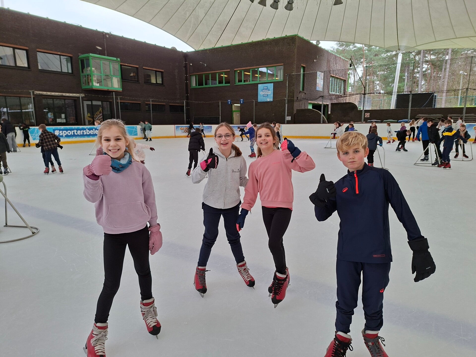 Met de fiets reden we naar de schaatsbaan in Herentals. Dat deden de kinderen superflink en voorzichtig, zodat we er vlot geraakten.
