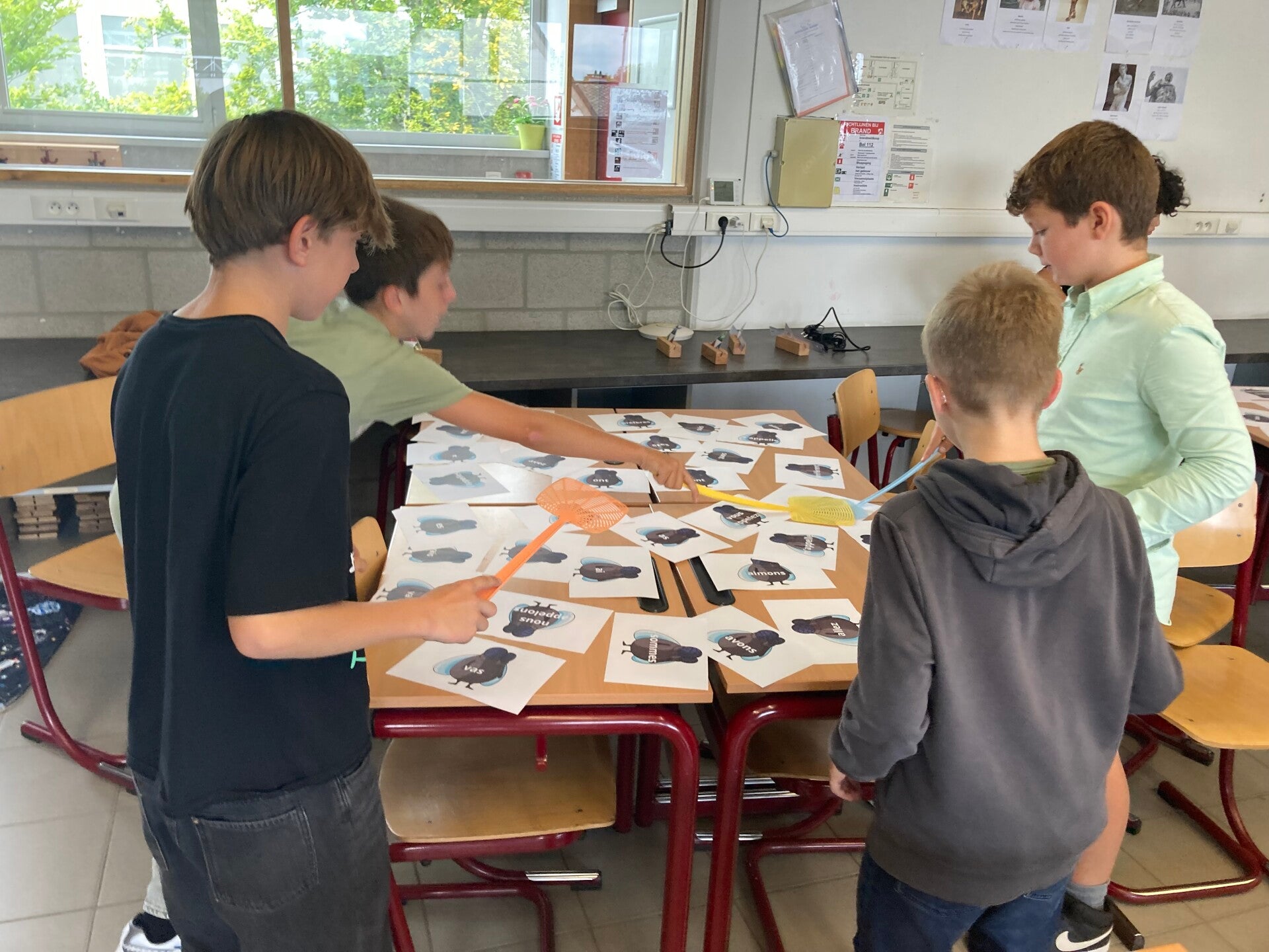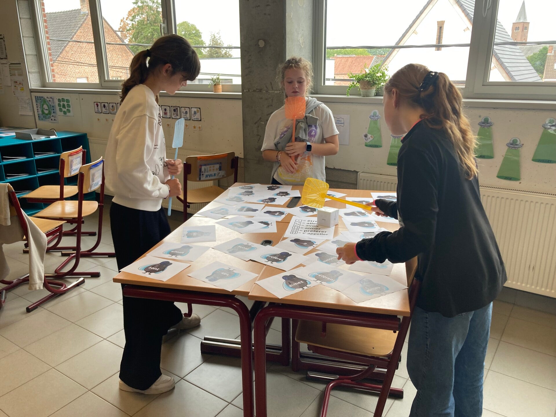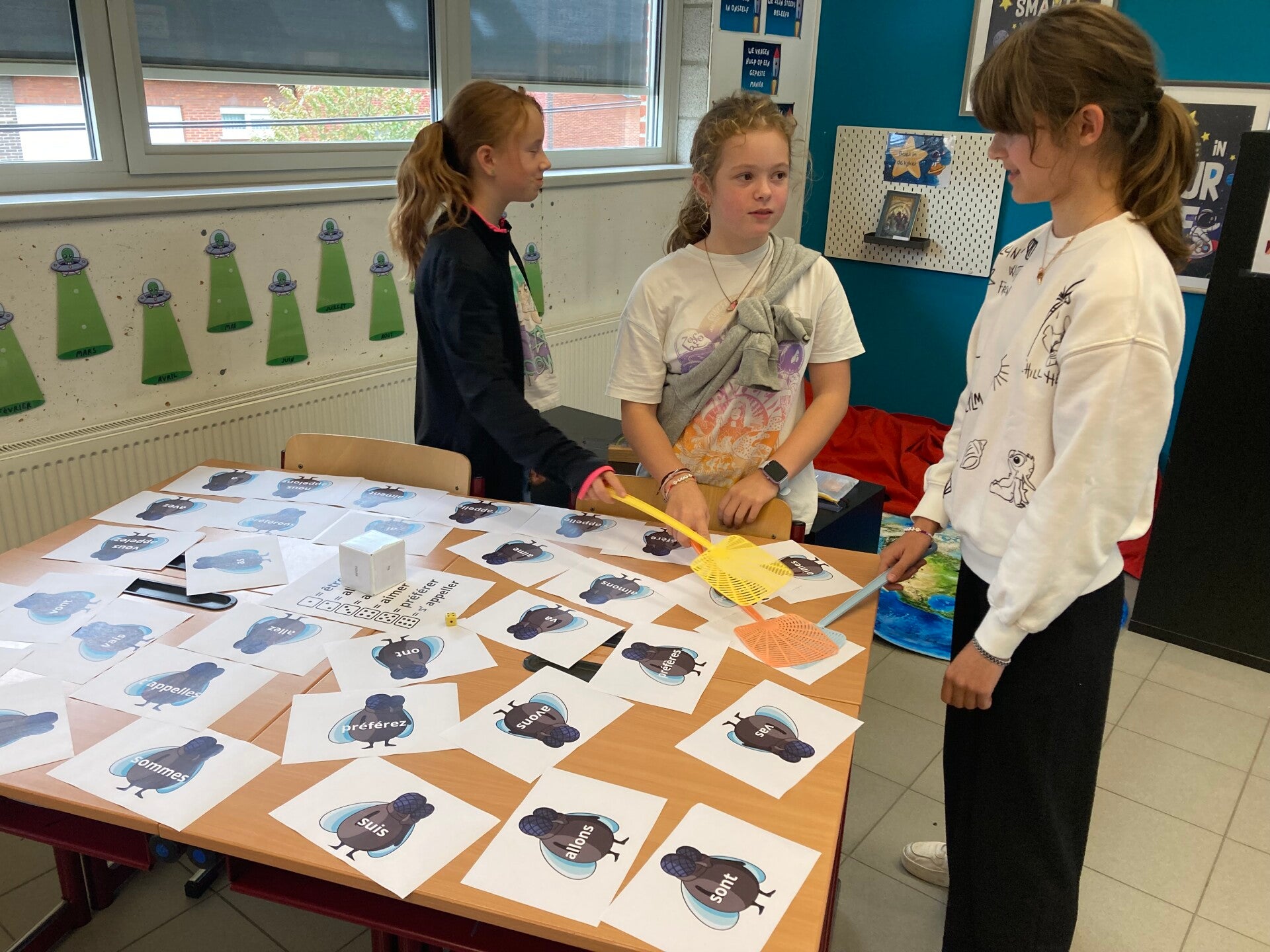 Bij de Franse nales leren we al spelenderwijs Frans. We herhalen de leerstof die we nog moeilijk vinden aan de hand van leuke spelletjes. Vorige week hielden we een heus rallydictee om de Franse woorden van het vijfde leerjaar nog eens te herhalen. Deze week oefenden we enkele onregelmatige werkwoorden en werkwoorden op -er aan de hand van het vliegenmepperspel.