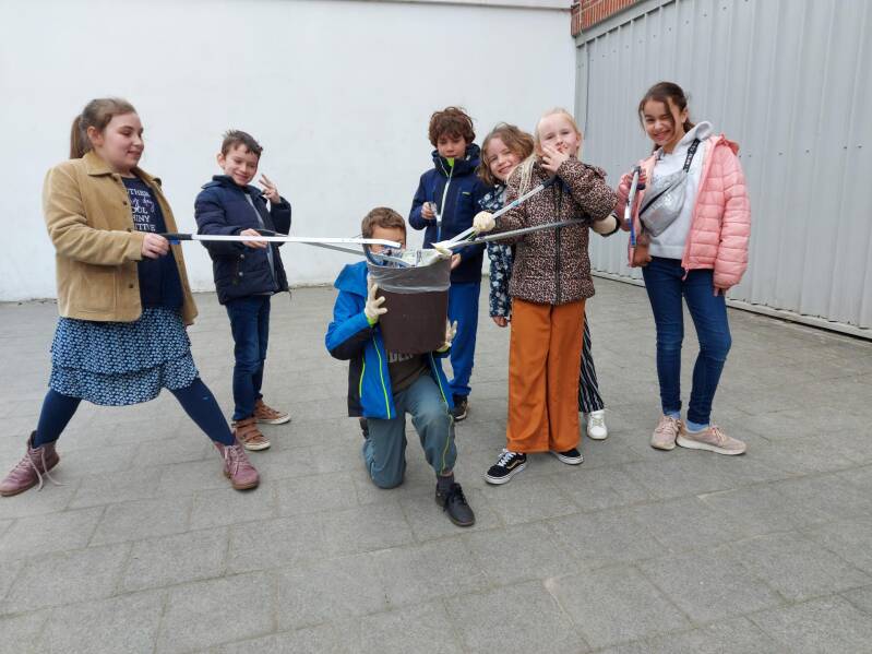 De leerlingen van het vierde leerjaar namen enthousiast deel aan een race tegen de tijd. In spelvorm gingen ze het zwerfvuil te lijf: ieder groepje kinderen probeerde zoveel mogelijk zwerfvuil te verzamelen binnen de tijd. Gelukkig viel de hoeveelheid nog meer.